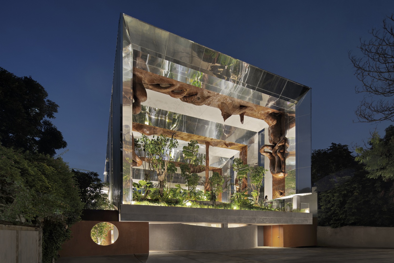 Frame Garden celebrates its porosity as being as open as possible as a contribution to the cityscape. The building was nothing more than just a framed garden, hovering double shaded – low energy indoor area.
