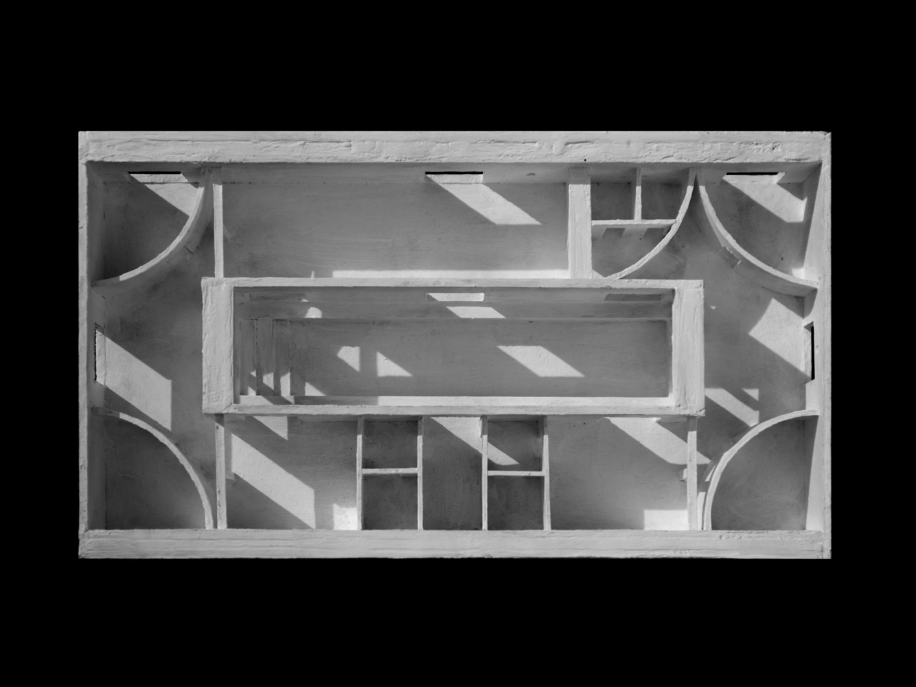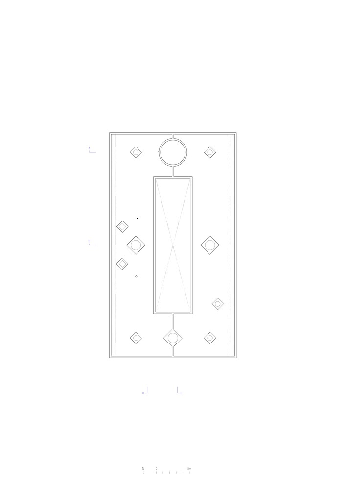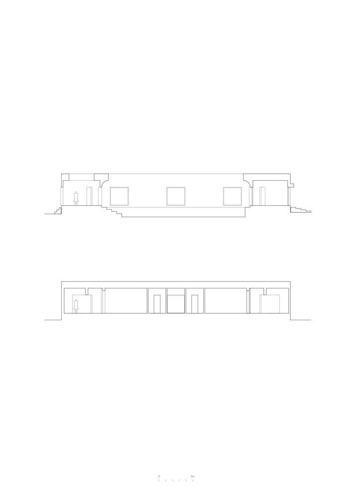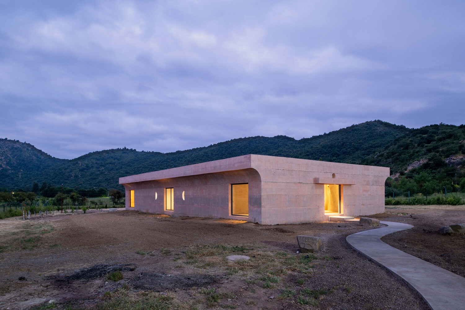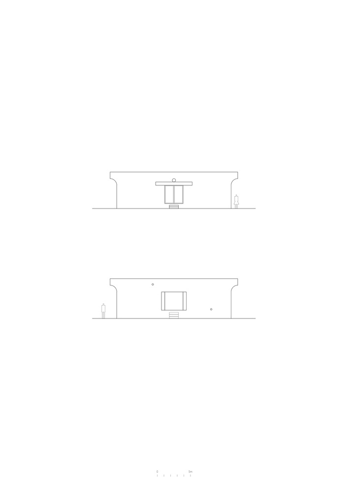 While the alignment of punctual apertures allow for projections to the surrounding landscape, a heavy curved eave makes a clear distinction of their cardinal orientation.