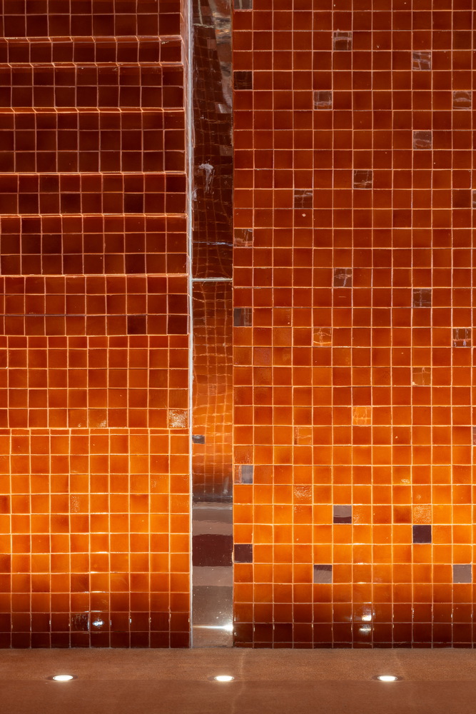 Clad in red-toned terracotta tiles drawn from the color of the Chedi itself and complemented by a reflective ceiling, the corridor heightens the sensory transition from exterior to interior. Unlike the grandeur and openness of the main entrance, this passage evokes a sense of discovery and invitation, drawing visitors inward.