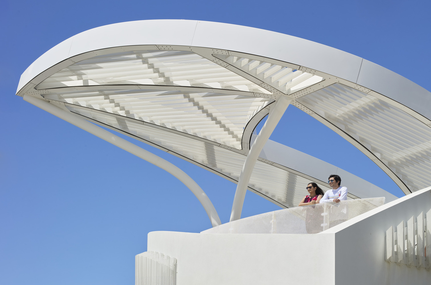 A ramping dune provides park-goers to experience the elevation changes while moving up to a twenty-five foot cantilevered overlook of the beach and ocean.