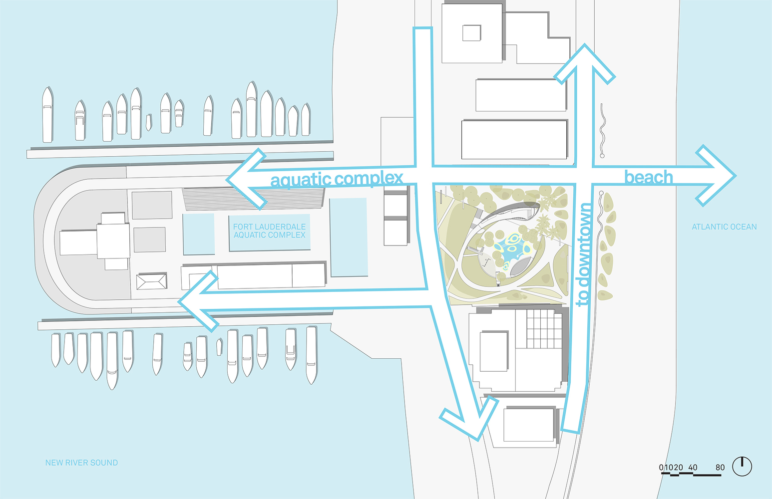 The overlook and corresponding ramp have been designed to create universal accessibility of the site for all users. A coastal plaza to the north creates a shared space to calm traffic and provide a "shade hammock".