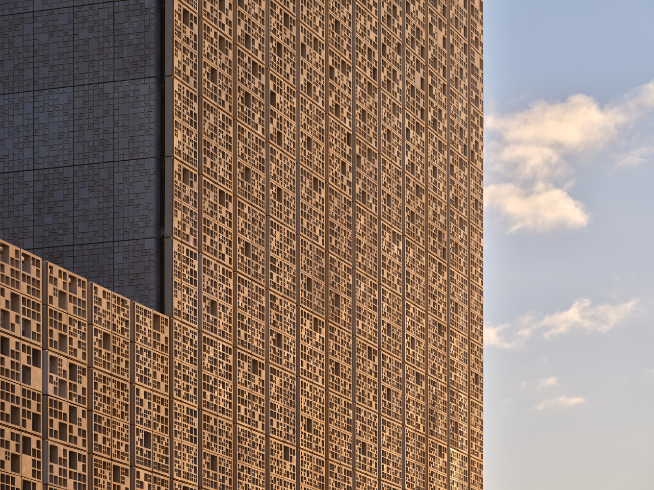 Like a relief that captures light at different times of the day, the facade facing the south side of the city expresses comfort, ecology, and virtuous progress.