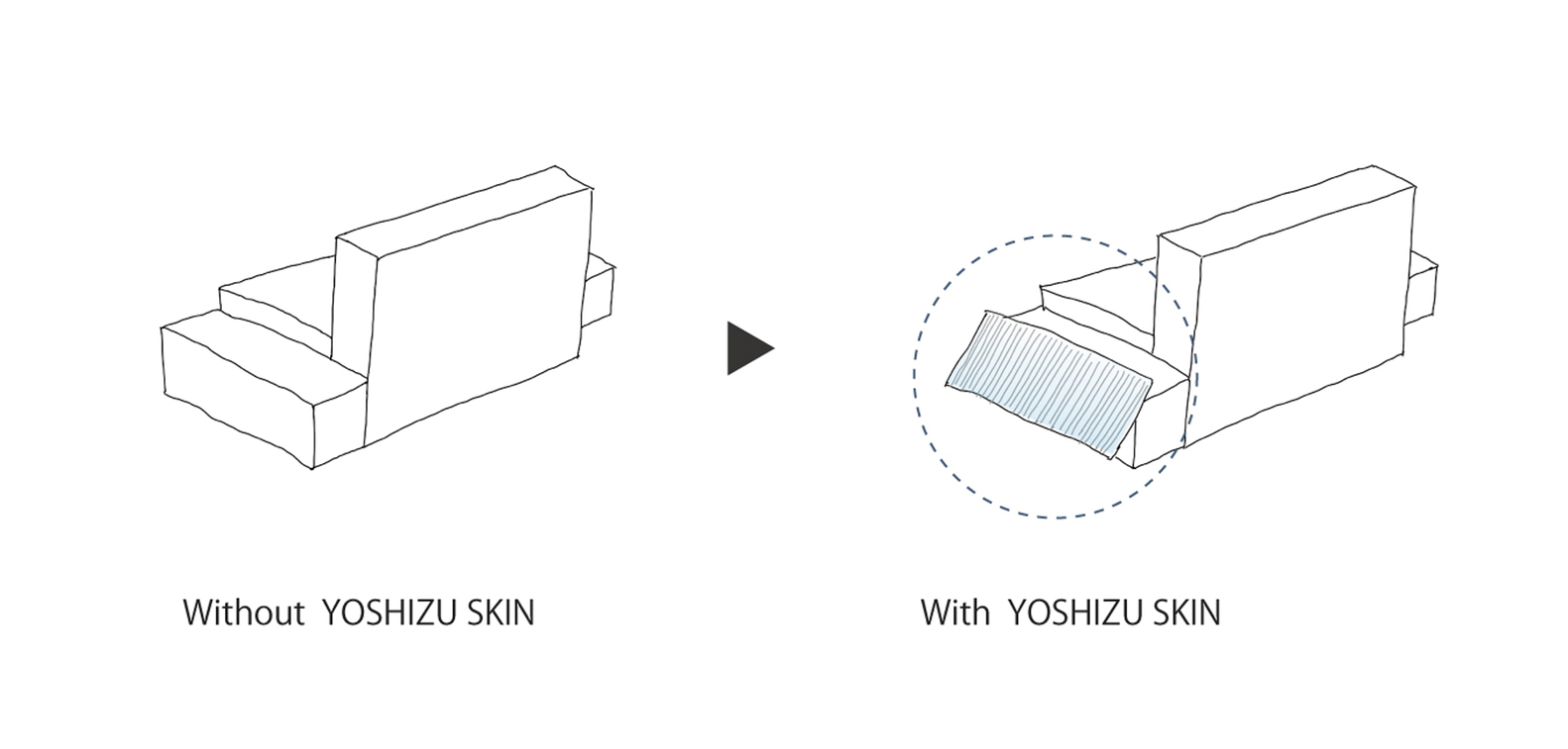 YOSHIZU SKIN, which serves as an icon of this environmentally friendly facility designed to coexist harmoniously with nature, is an environmental feature that symbolizes beauty.