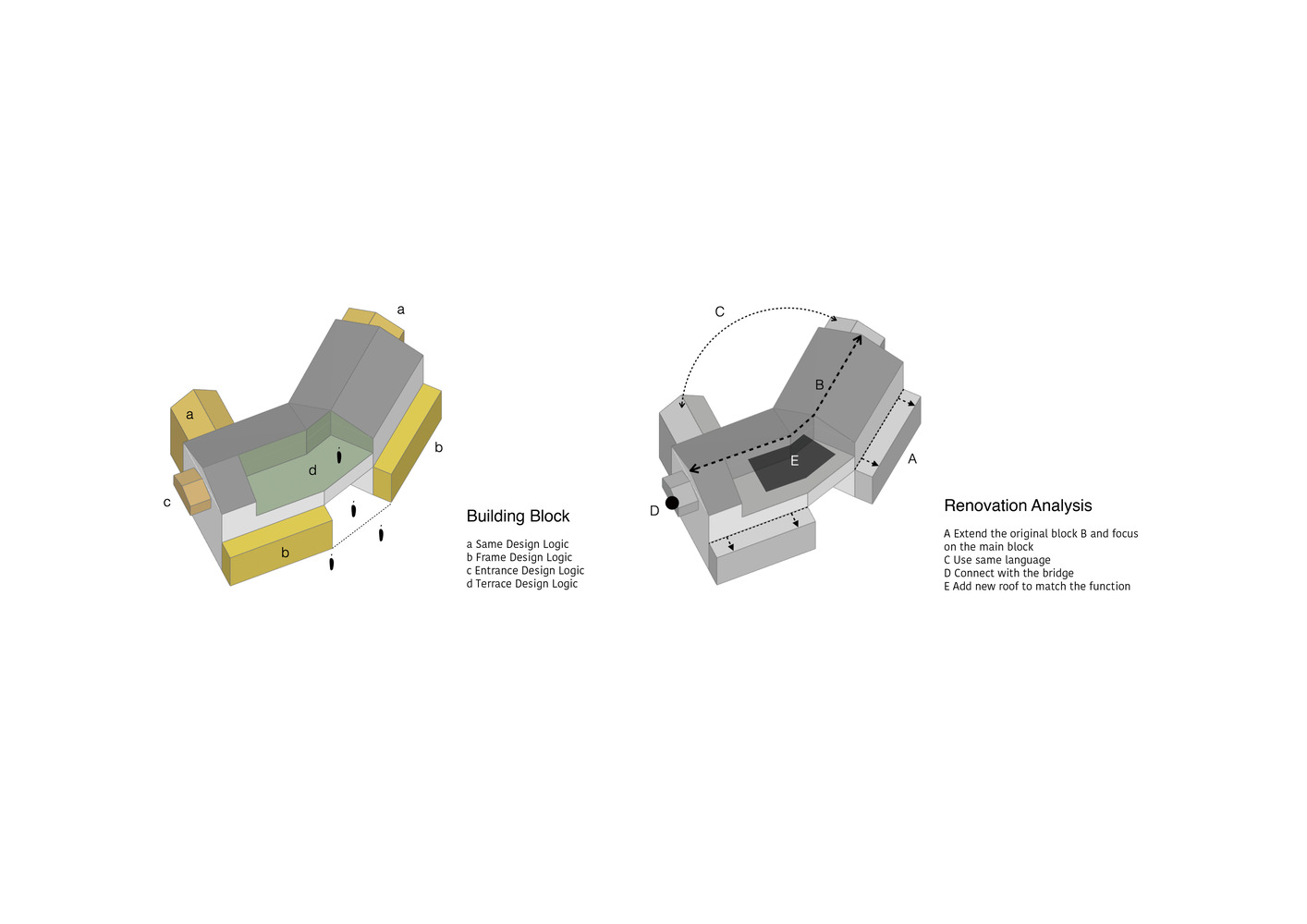 Retaining the existing structural frame, the renovation reinterprets the local "frame-and-infill" logic to reorganize the façade and internal flow.