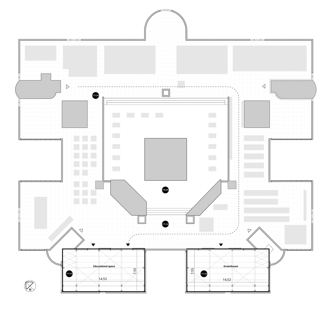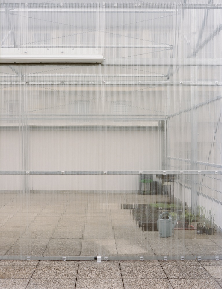 Roof openings reinterpret the traditional language of agricultural greenhouses and are equipped with an autonomous, thermosensitive opening system.