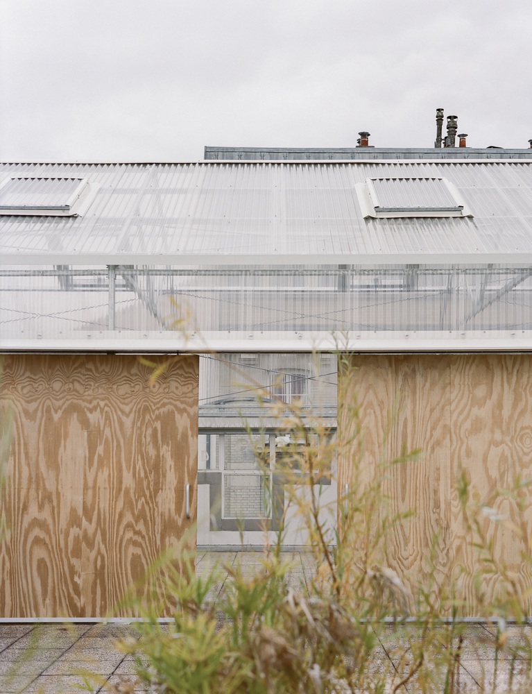The rooftop, originally intended as a school playground, already offered spatial qualities compatible with productive use.