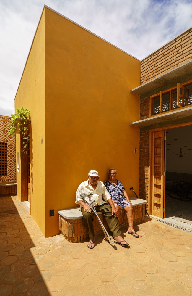 Located in Feira Nova, a town of 20,000 inhabitants known for its production of cassava flour in the Pernambuco hinterlands, the residence of the architect's mother was built by local residents in the 1980s using adobe techniques.