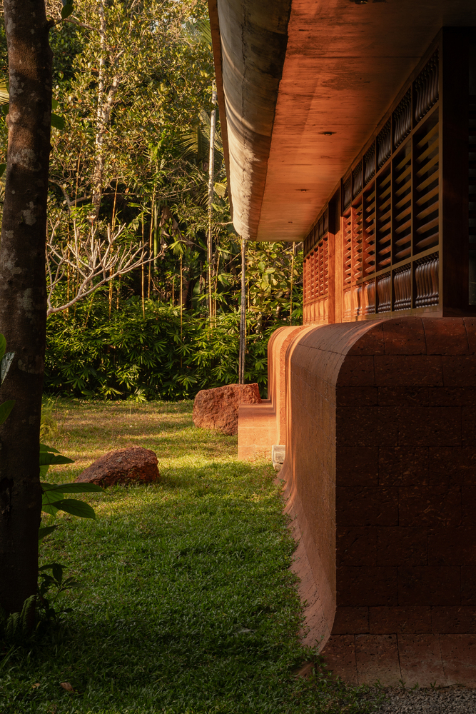 The materiality of the project solely focuses on the locally available materials- the raw and exposed laterite stone, along with the warmth and intricate character of wood, which softly blends together throughout the built form.