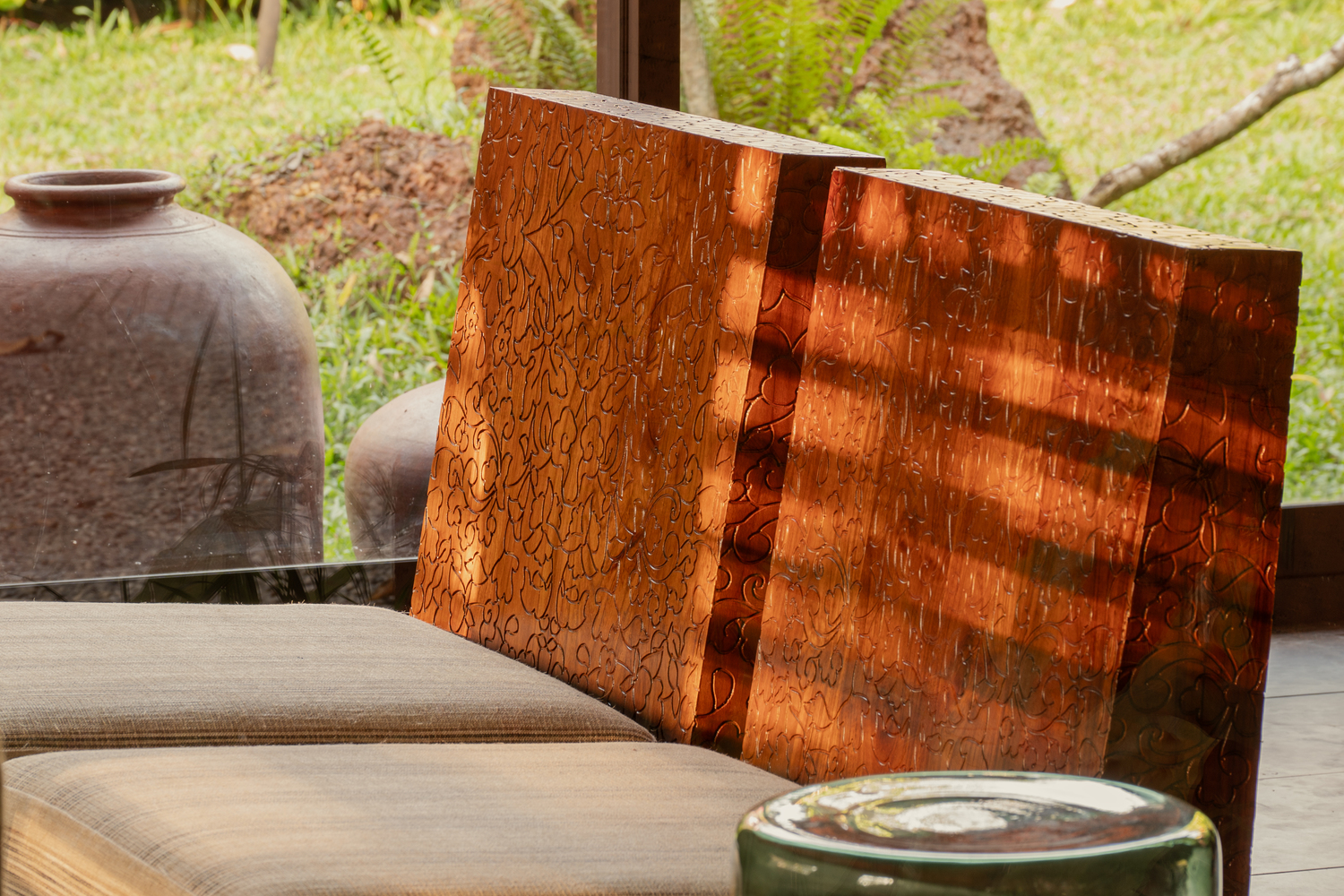 The materials used are raw and simple, but the uniqueness lies in the variety of its carvings, such as the curves out of laterite, the floral grooves on the doors, and the wooden screens that are designed in the traditional style.