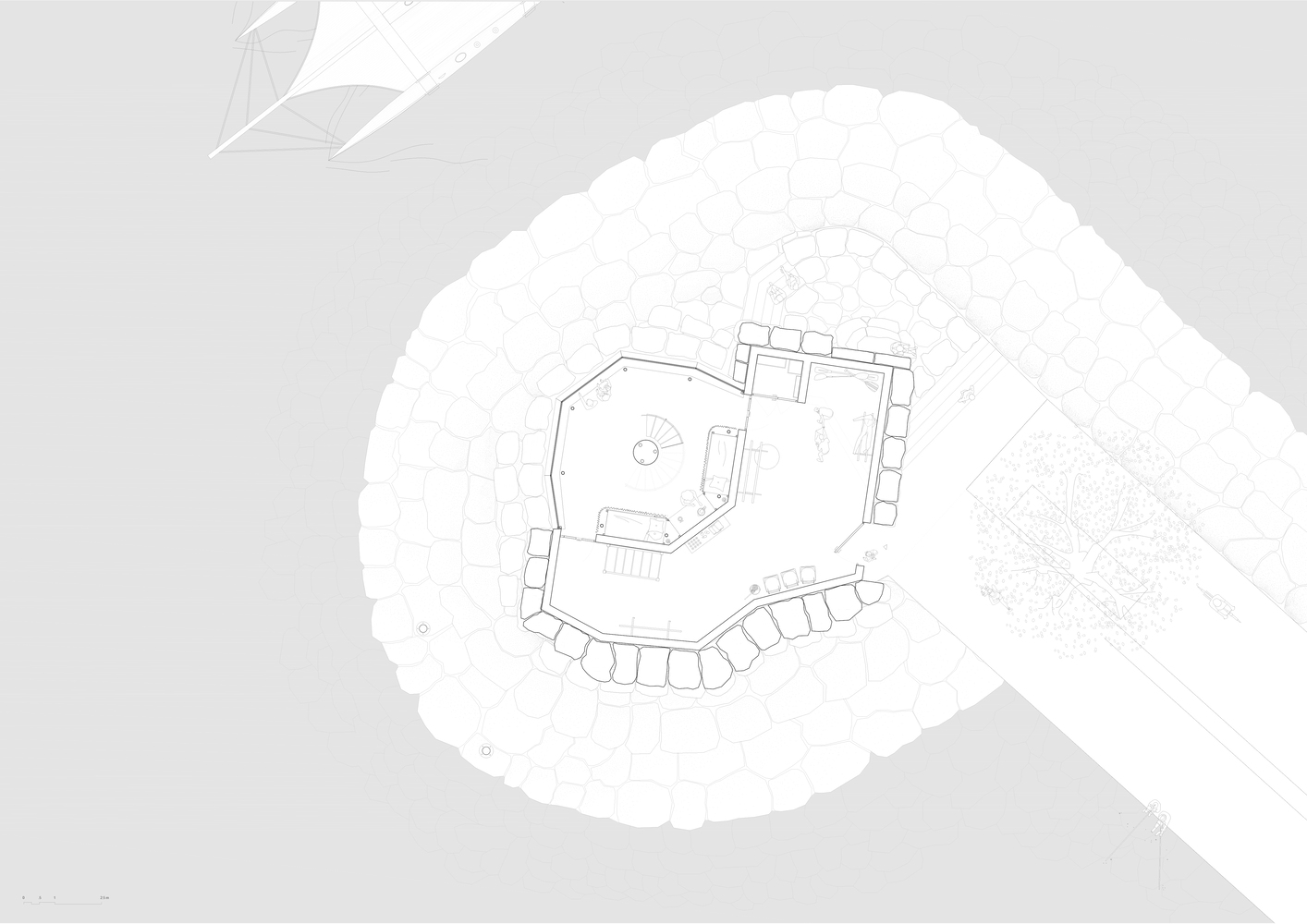 The site, silent and delicate, presents a unique opportunity to create a landscape, to accentuate this point of extension into the lake with a strong and well-placed development that serves as a support for the lighthouse structure.