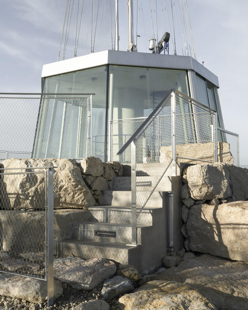 In a way, it rejects the figurative, stereotypical, and well-established architectural presence of the iconic lighthouse, replacing it with an infrastructural presence set against a landscape of riprap.