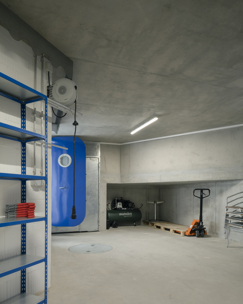 In the base, a living space, there is a panoramic view and a protected interior, centred on a long panoramic window.