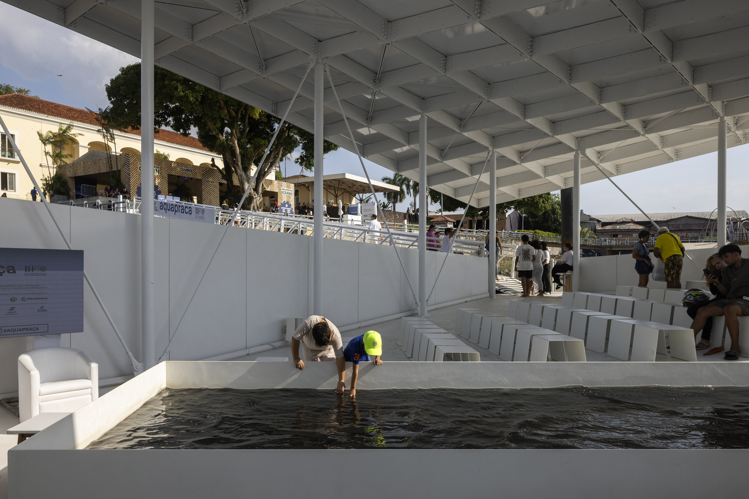 In Belém, AquaPraça incorporates an additional roof structure and serves as a civic catalyst, hosting symposia, cultural programs, and discussions on climate policy.