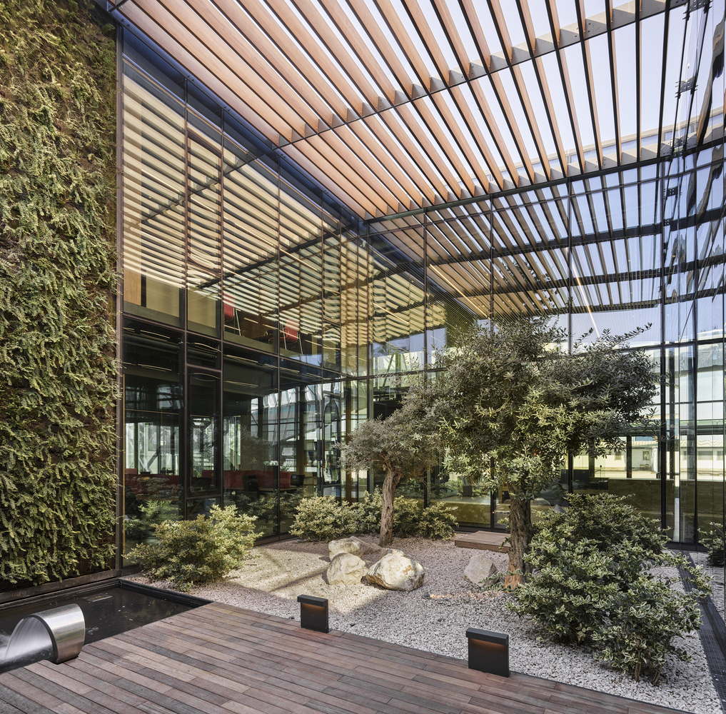 While the building inside the shell was designed as a green roof, a green environment was created for the working areas.