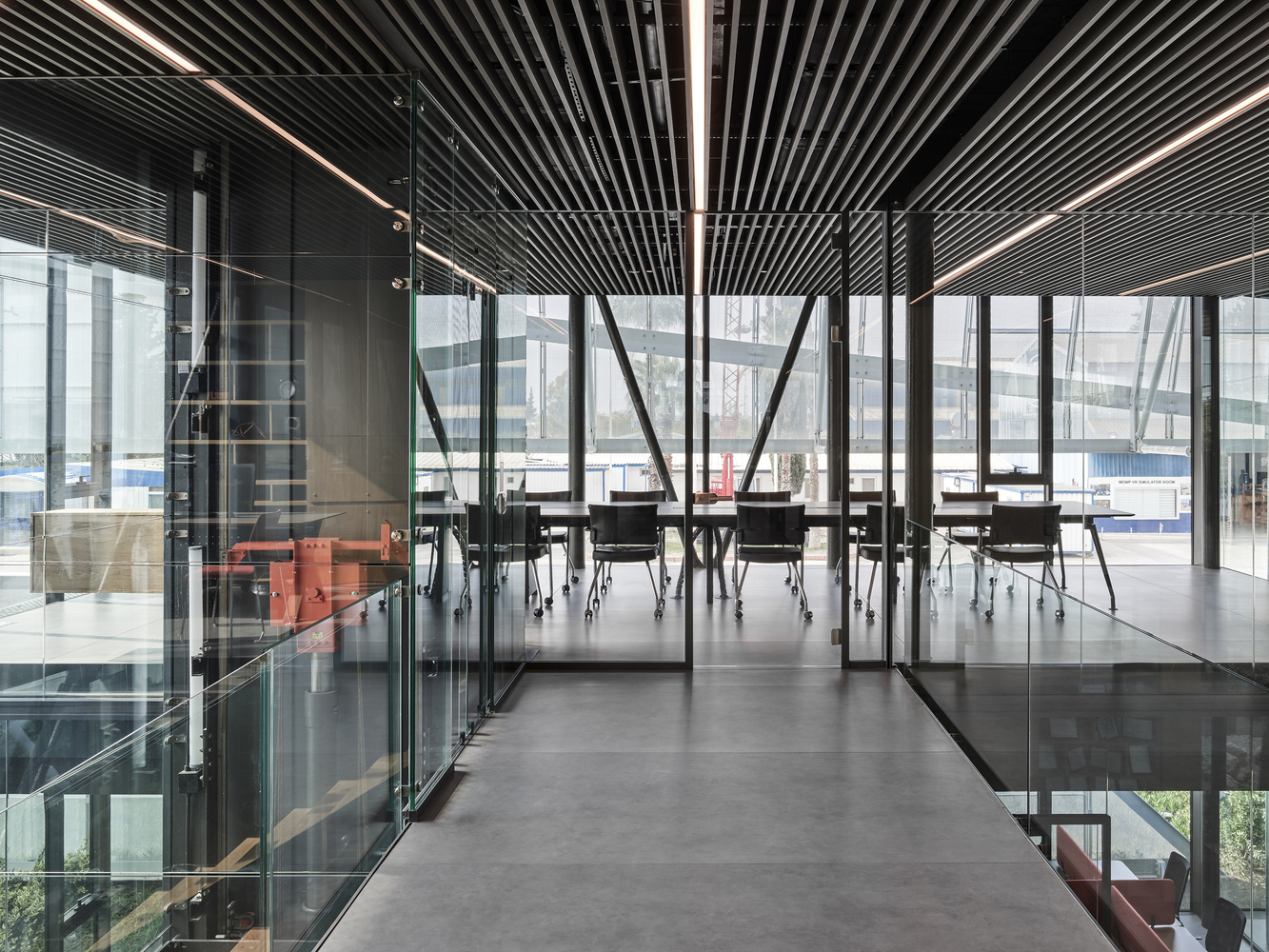 In the project area, which also includes a steel manufacturing workshop, the main purpose was to highlight the steel, which forms the structural system of the building, as a design element.