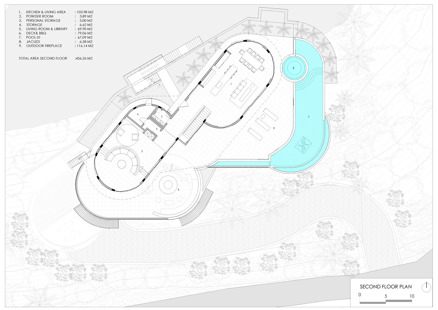 The circular motif is not only a spatial device but a conceptual one. It allows for a kind of softness—an informality that contrasts with the formality of orthogonal grids—and invites a slower, more intuitive movement through the house.