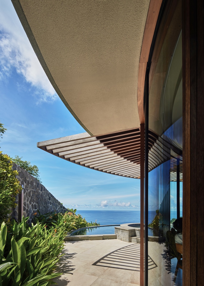 Each curve, each transition, has a reason. The use of warm teak ceilings, off-white walls, and pale Palimanan stone floors reinforces this approach.