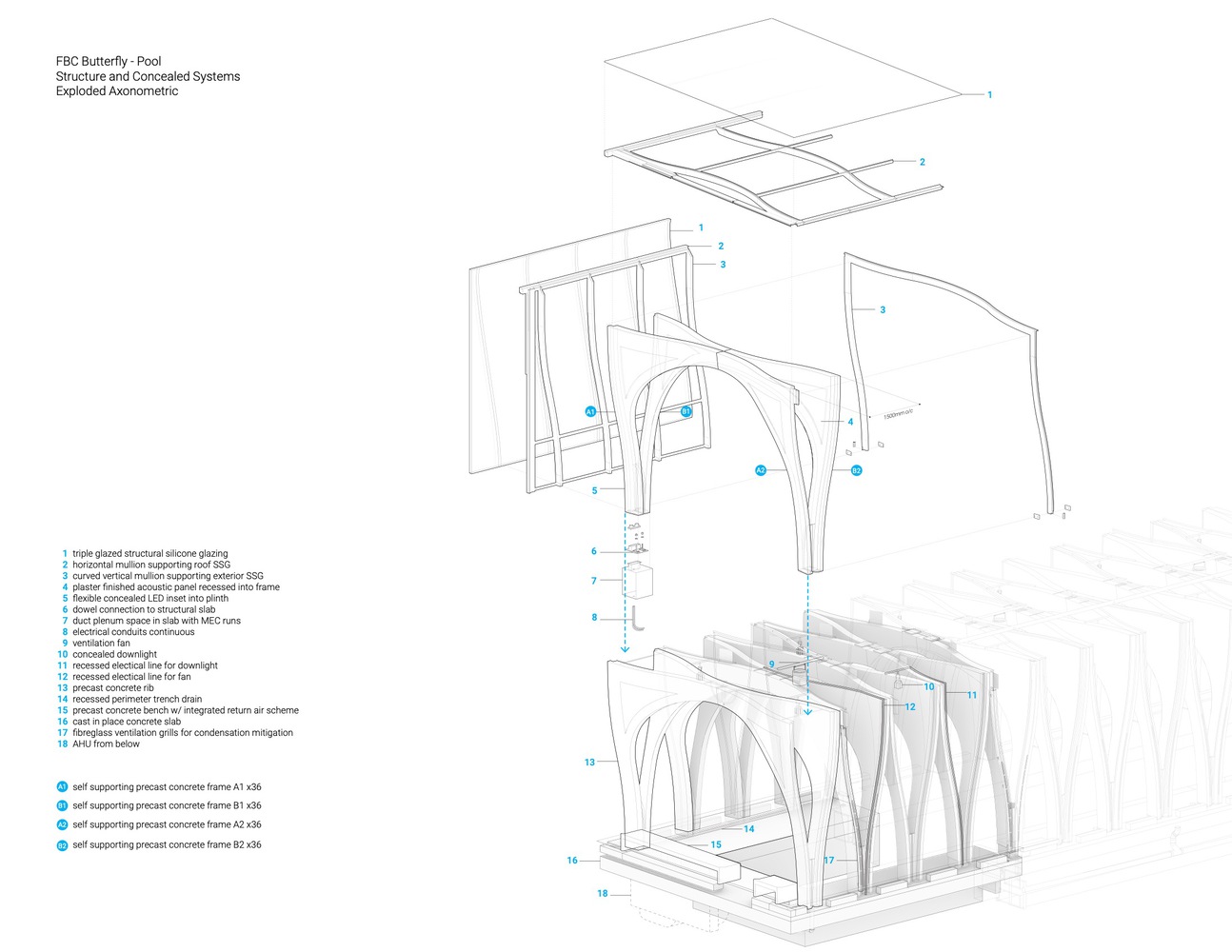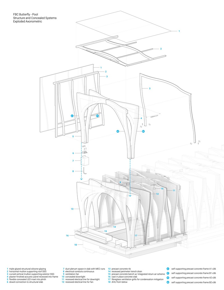 The complexity of the Butterfly project's geometry nonetheless required extensive prototype testing with fabricators. Several independent full-scale mock-ups were completed, with varying emphasis on visual and material quality, performance, and construction methodology.