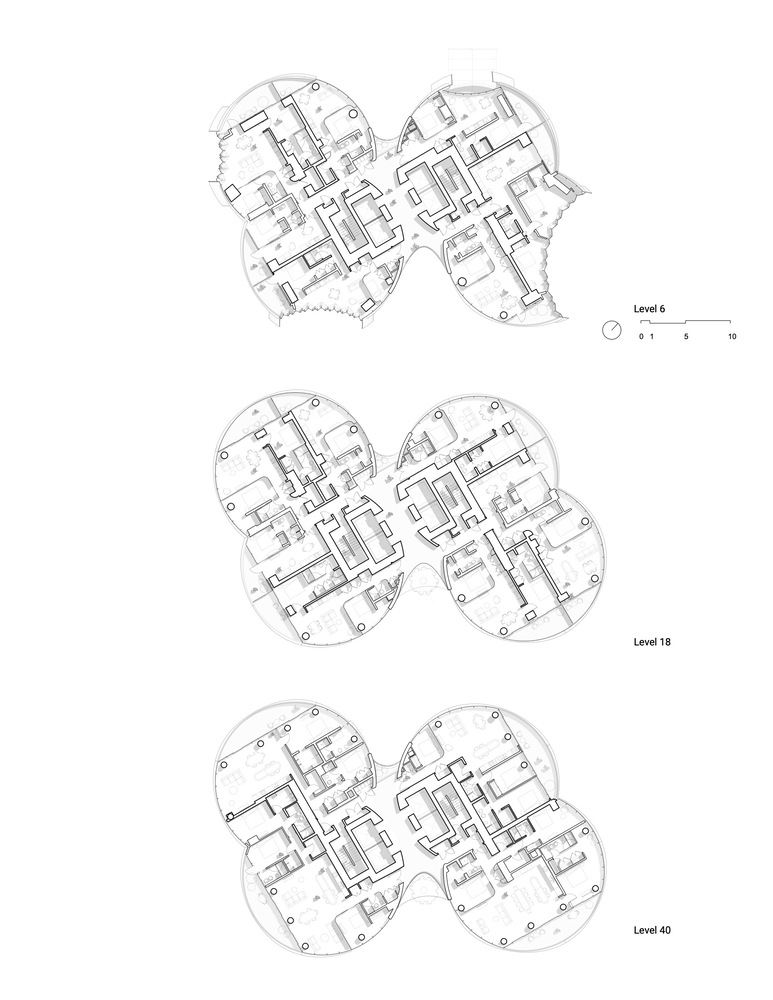Its gently undulating form and split floorplate create a stack of open-air breezeways and lush sky gardens at every level, offering residents moments of connection to nature, the city, and one another.