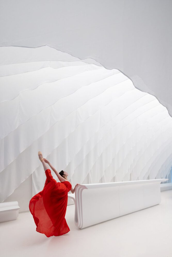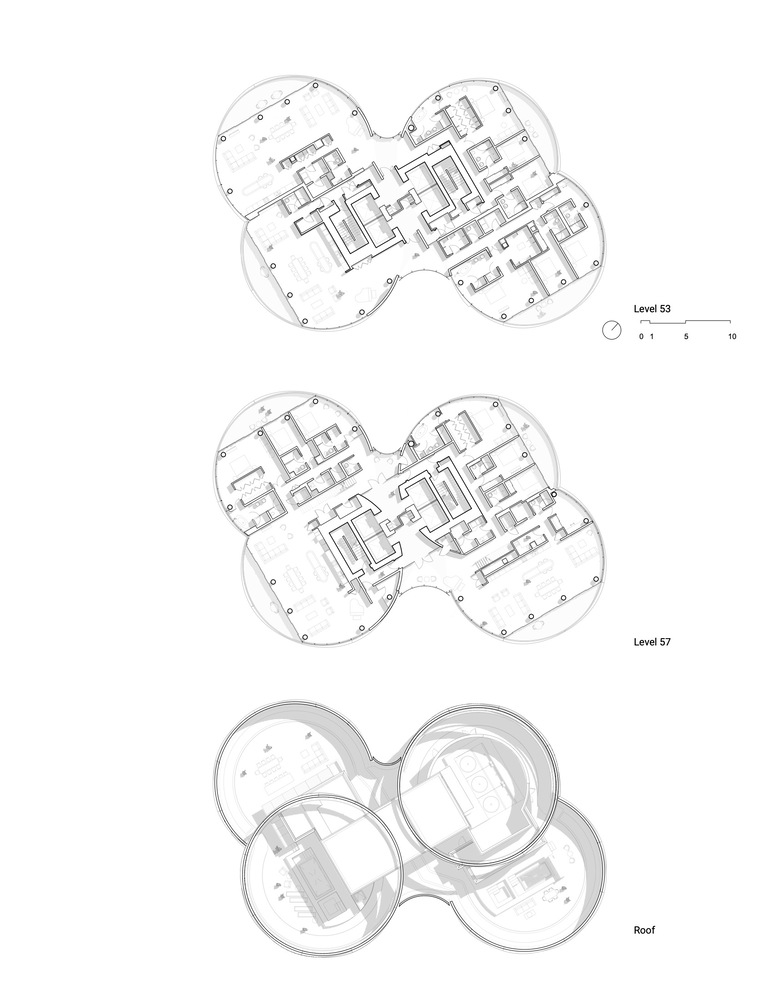 The balconies and shared sky gardens encourage passive cooling and provide panoramic views. Crowning the podium is a 50-meter pool enveloped in a transparent canopy supported by sculptural ribs—an engineering feat that integrates lighting, acoustics, and mechanical systems in a single expressive gesture.