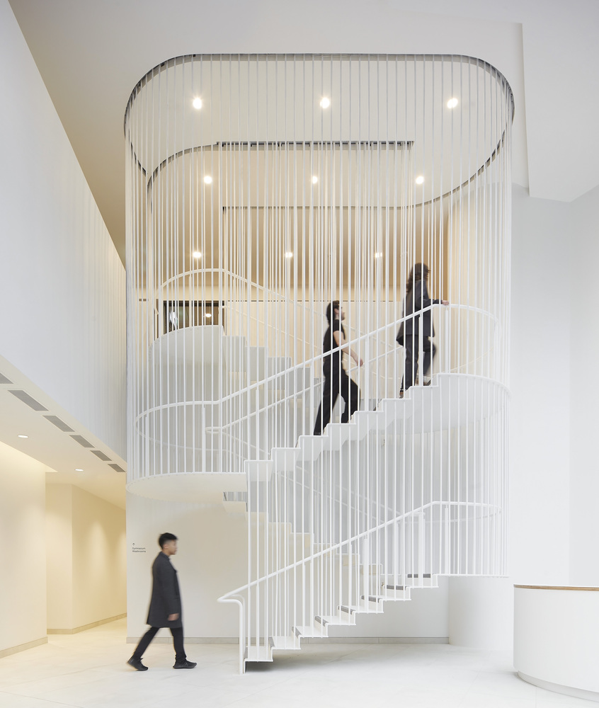 Every floor features open-air breezeways that encourage airflow, movement, and connection throughout the building. Every third level, these breezeways expand into "sky gardens," where Dawyck Purple Beech trees and sculpted benches offer moments of pause, social interaction, and sensory engagement high above the city.