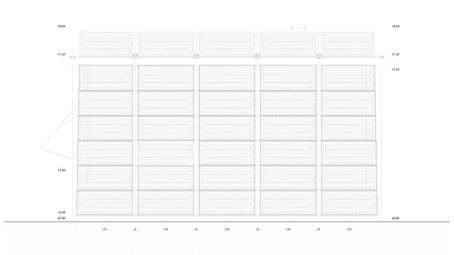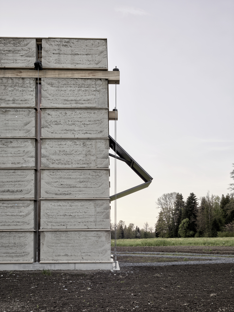 The prestressed earth-and-timber structure is based directly on the mock-up carried out at the Sitterwerk and is the world's first prestressed earth building.