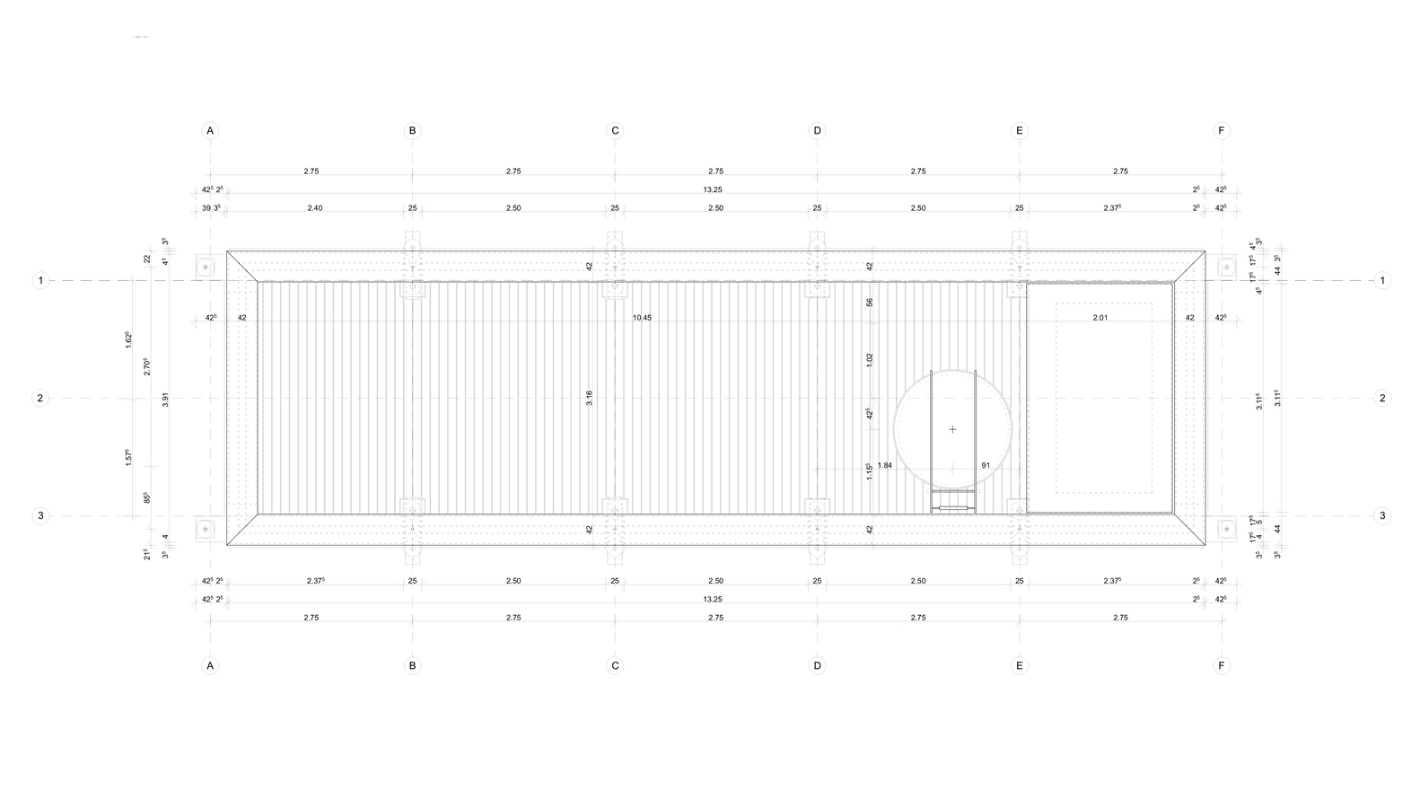 Simple steel frames can be attached to these to hold exhibition panels or exhibits. A steel spiral staircase provides access to the viewing platform on the roof.