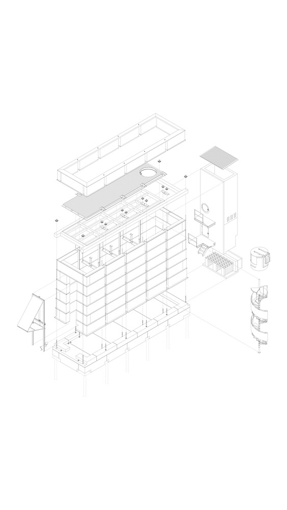 This eliminates the traces of building with prefabricated elements, which become the theme of this experimental architecture which seeks to increase the efficiency of the building process and stability by means of structural innovations.