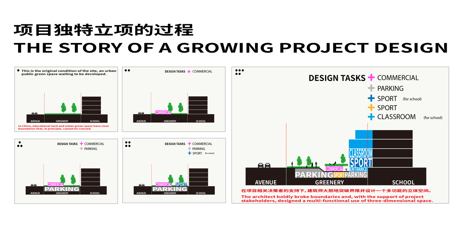 This increasingly complex project emerged from an interactive process and key breakthroughs by both the government and architects — through ongoing coordination and integration, architects drive the joint renewal of urban and educational spaces.