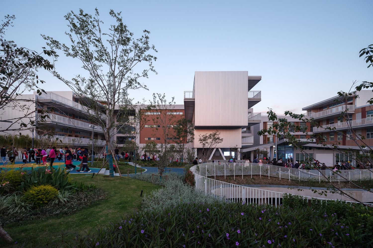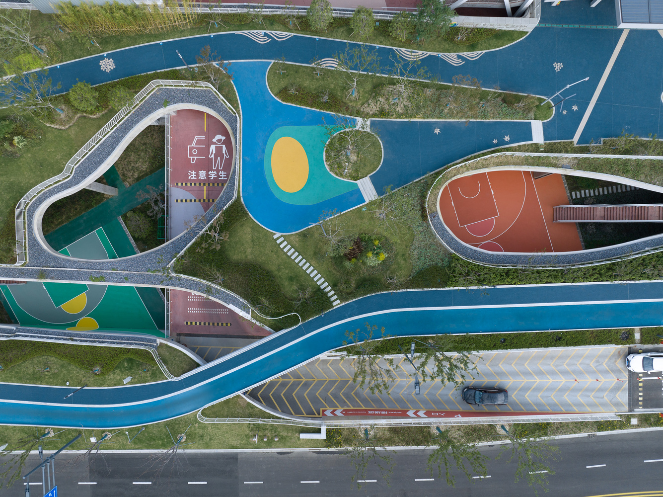 Architecture and topography comprehensively extend the urban green corridor, where students, parents, teachers, and citizens share the spatial system at different times, which forms a new model of public urban interaction.