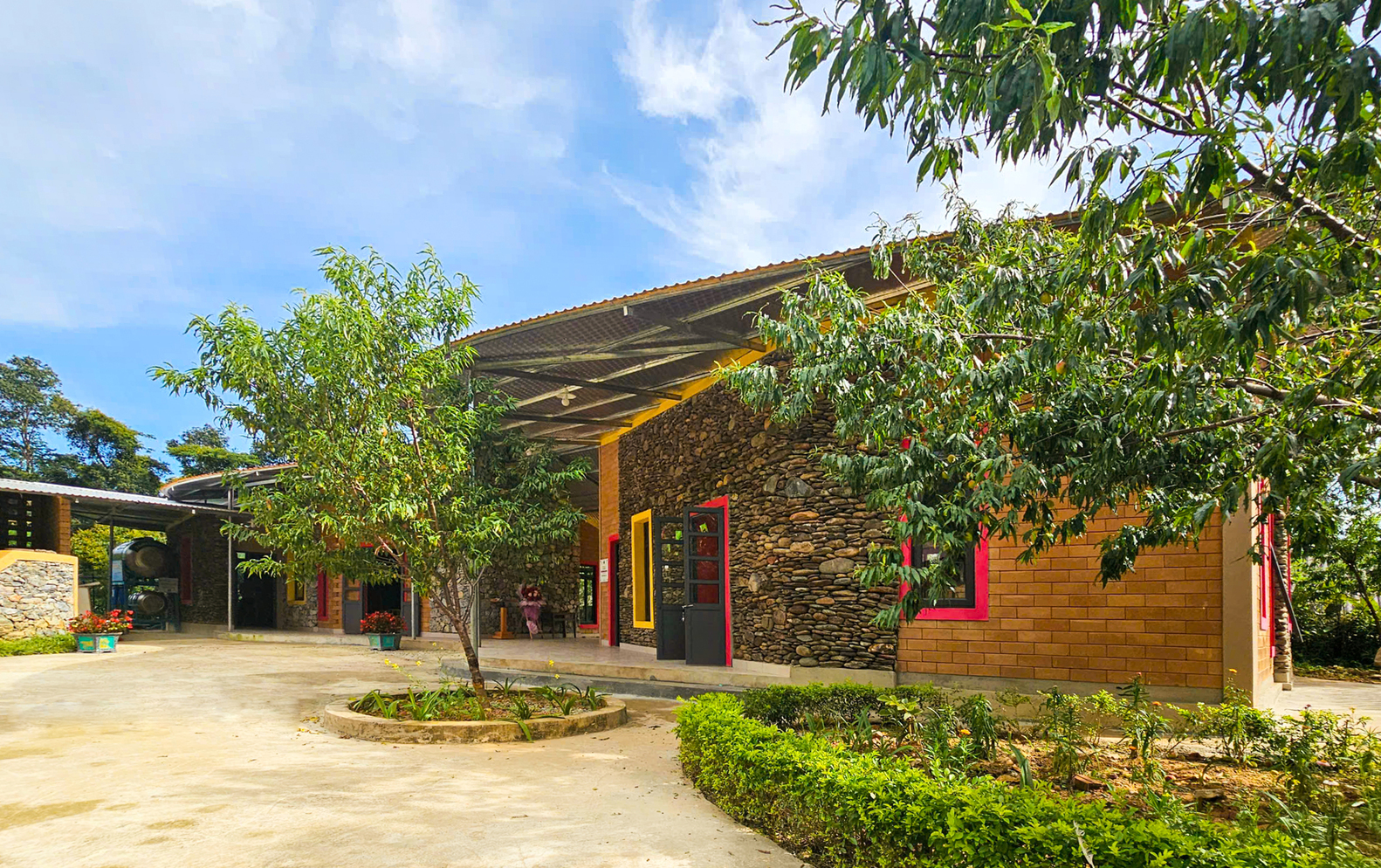 The project adapts traditional stone-stacking techniques of H'mong ethnic and maximizes the use of local materials by producing adobe bricks on site and reusing soil from excavation.