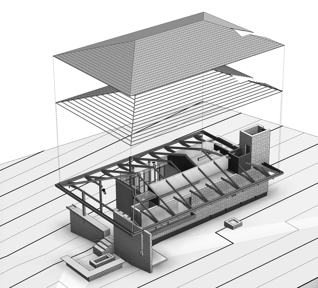 Both houses have ceramic tile roofs with excellent thermal performance and metal gutters that collect rainwater, channeled through downspouts to the cisterns installed beneath the floors.