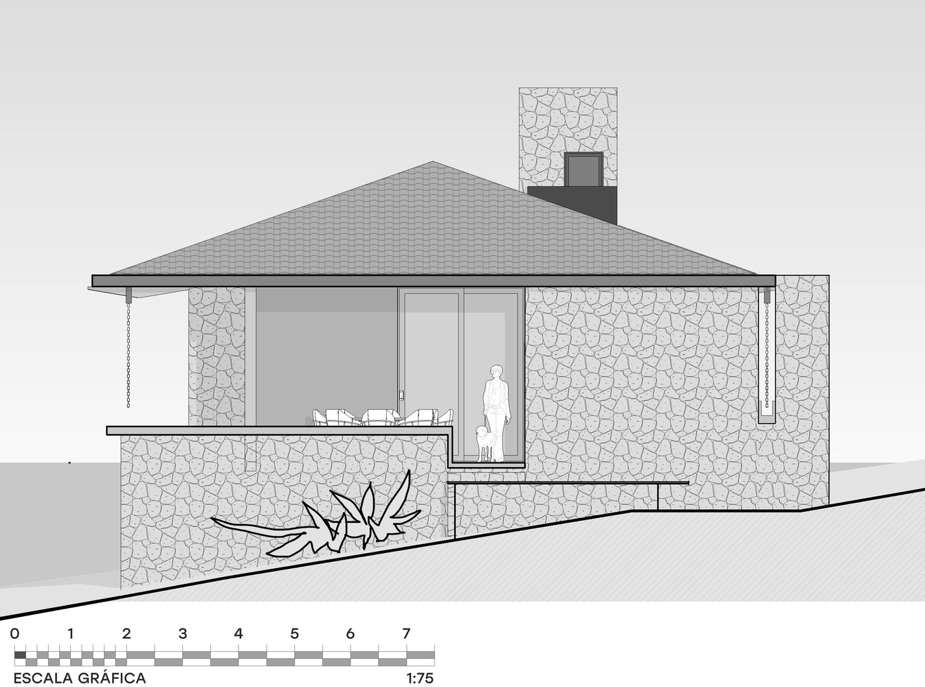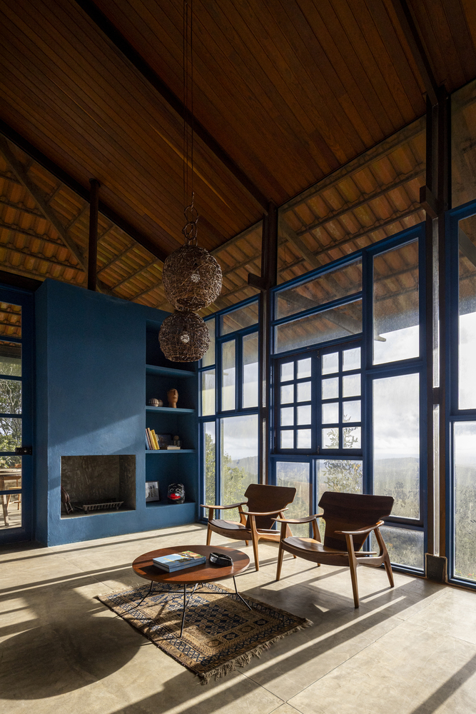 The architectural design is deliberately simple: two suites, a living room integrated with a gourmet kitchen, a porch with a lavatory, and all rooms oriented towards the landscape. The central idea was always to allow the view to be the protagonist.
