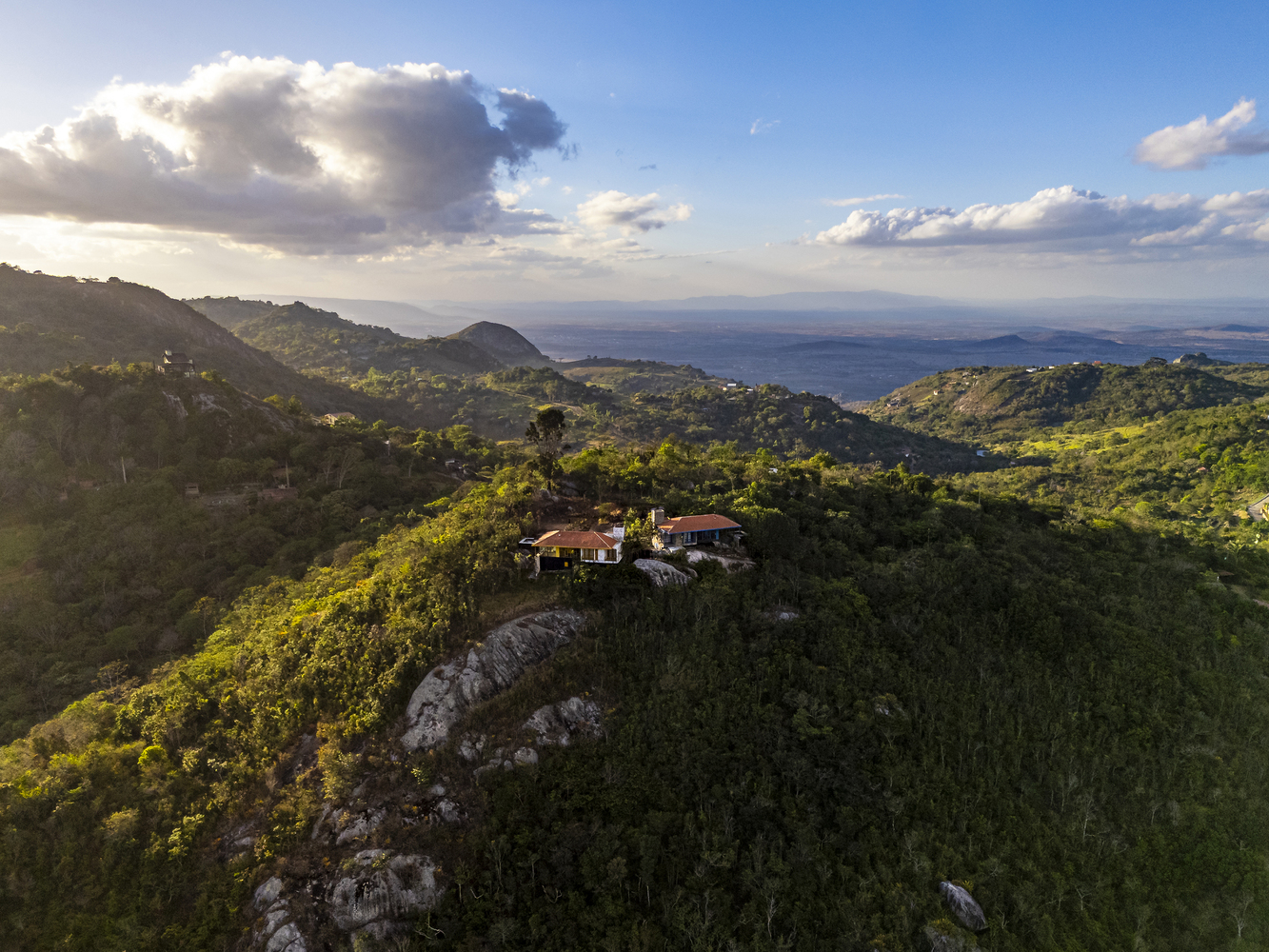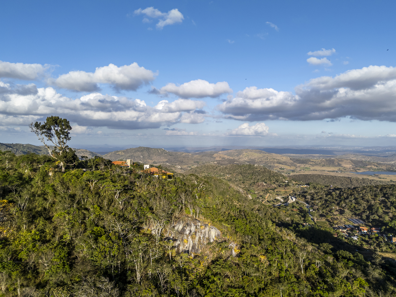 After a few weeks of cleaning - without deforestation - the architect and his visiting partner, Cléber, returned and found a large rock with an exceptional view facing south, from where one can see Bezerros, Sairé, and Gravatá.