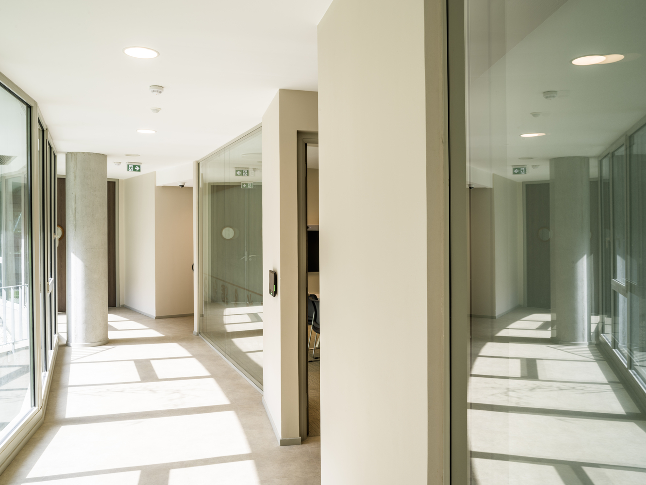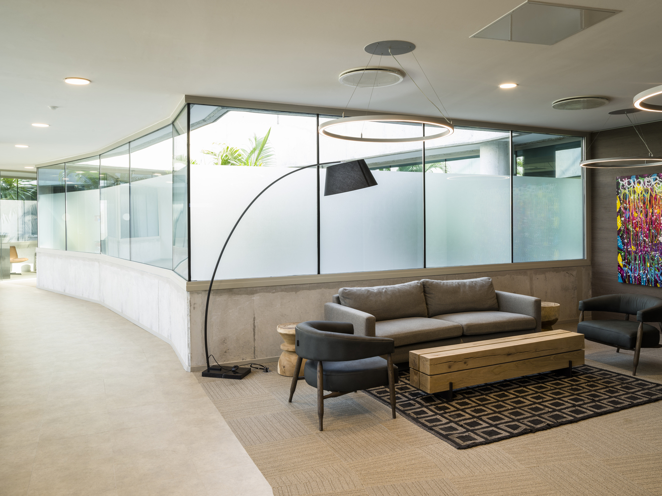 The use of concrete in its materiality brings a minimalist touch highlighting the duality of the building's language, a subtle discourse between authenticity and hyper-connectivity.