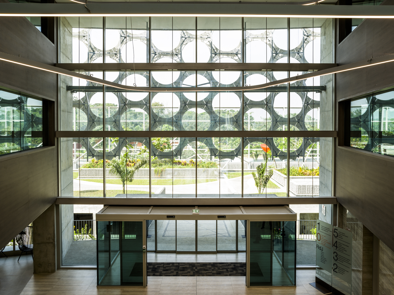 In a form of a natural extension of the neighboring vegetal axis, the building stands tall by the lagoon in an architecture that aims to materialize the group's dynamics and overall offer, all the while enhancing and highlighting the local know-how.