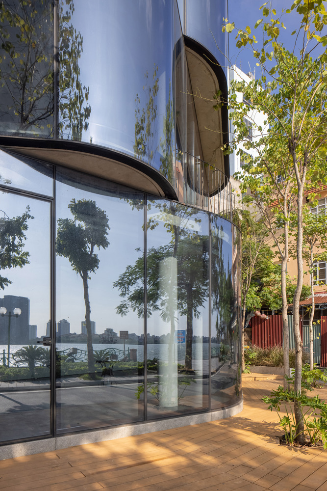 Instead of a solid commercial block, Crystal House acts as an elegant, shimmering presence embedded naturally in the waterfront environment.