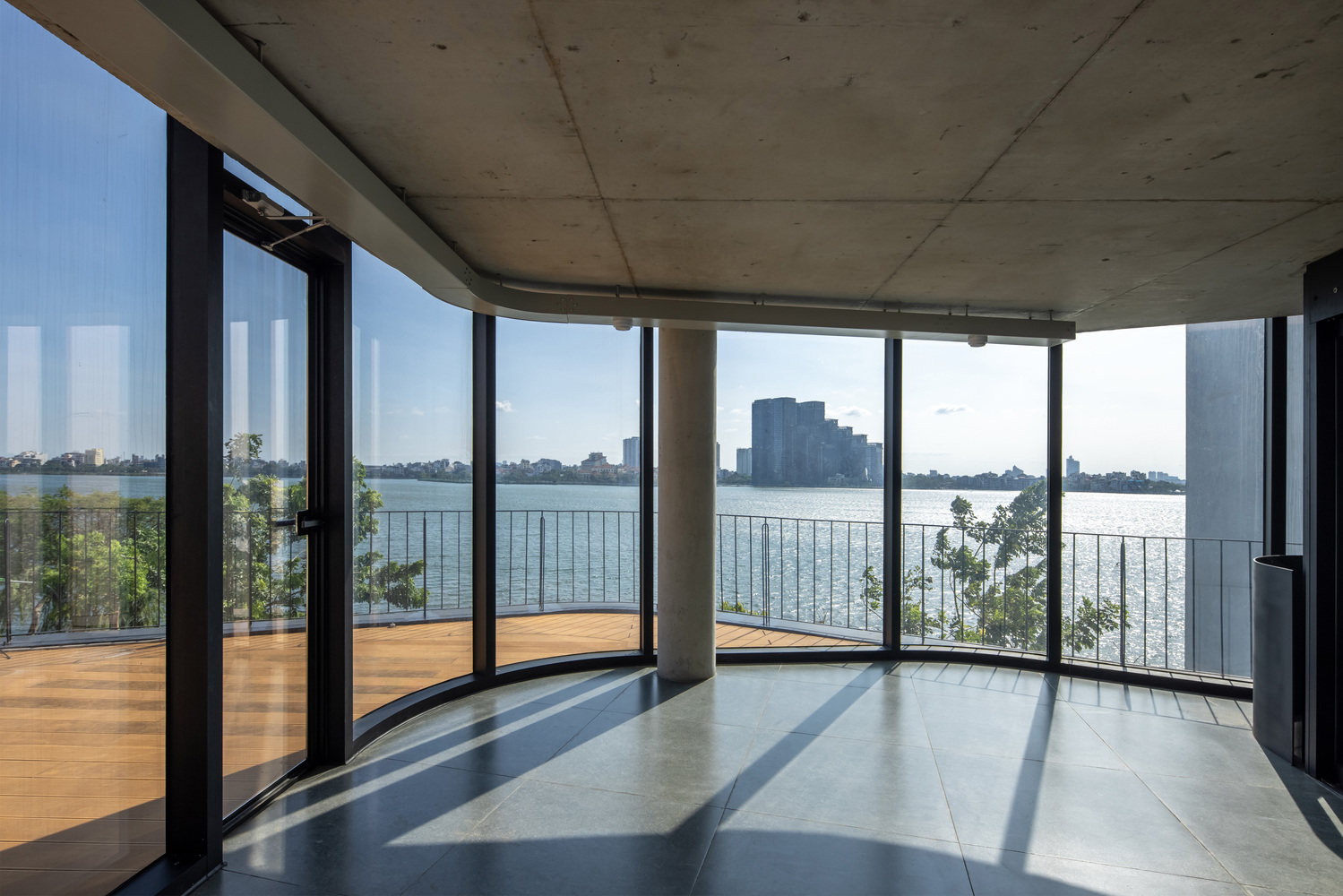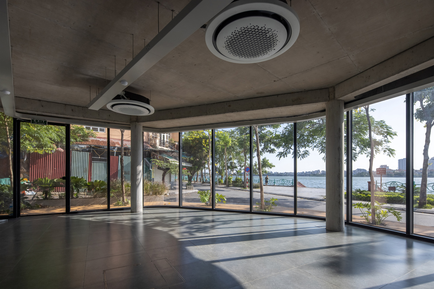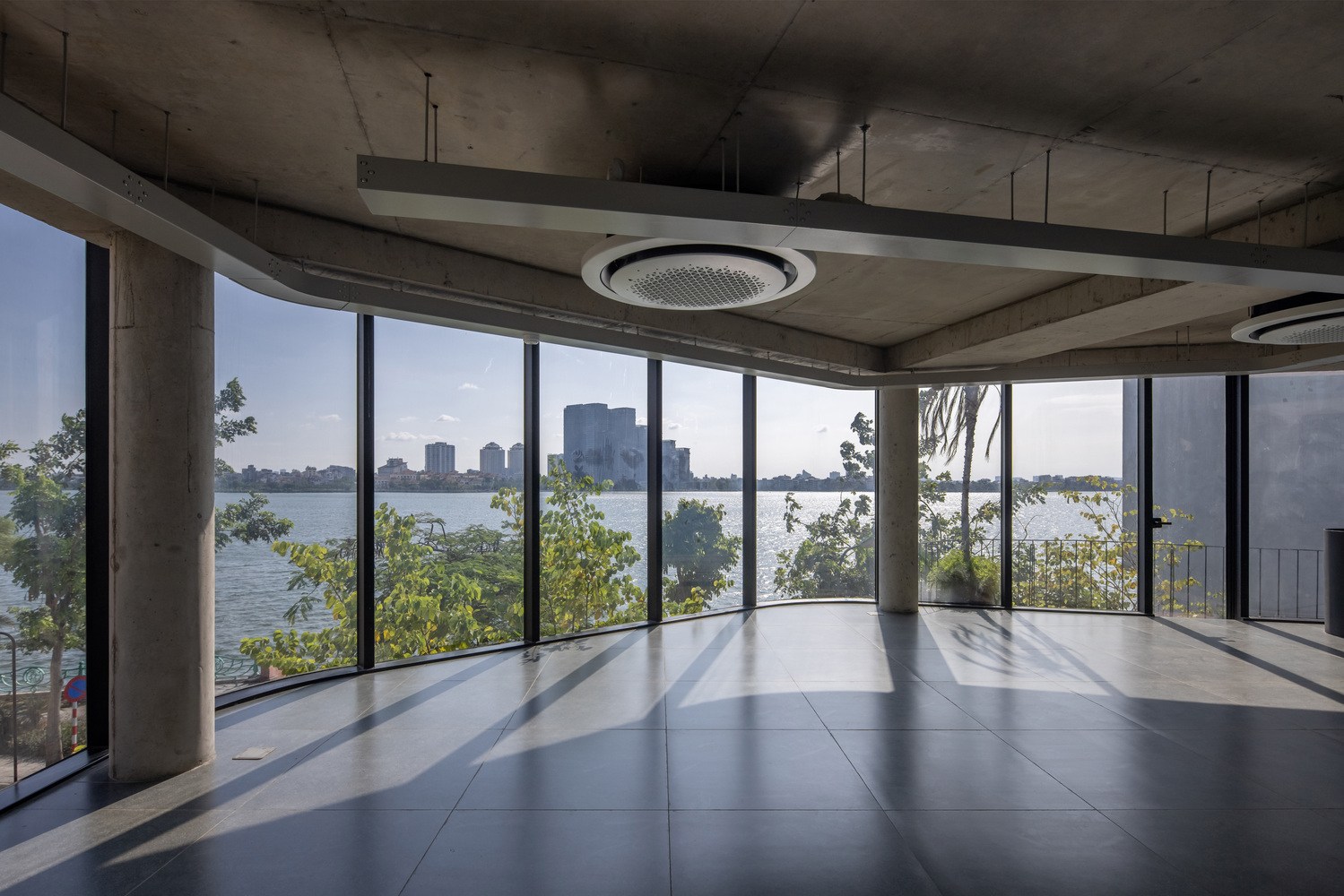 This condition allows the building to maximize natural daylight, views, and ventilation while interacting closely with the lakeside pedestrian promenade.
