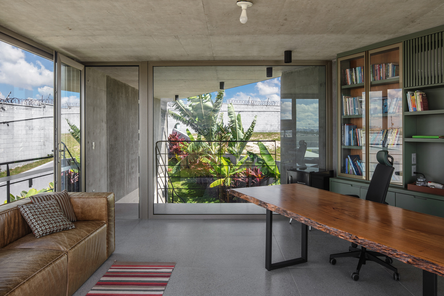 The longer part accommodates the hallway of bedrooms, the last of which is completed with a private garden and a staircase leading to the office above.