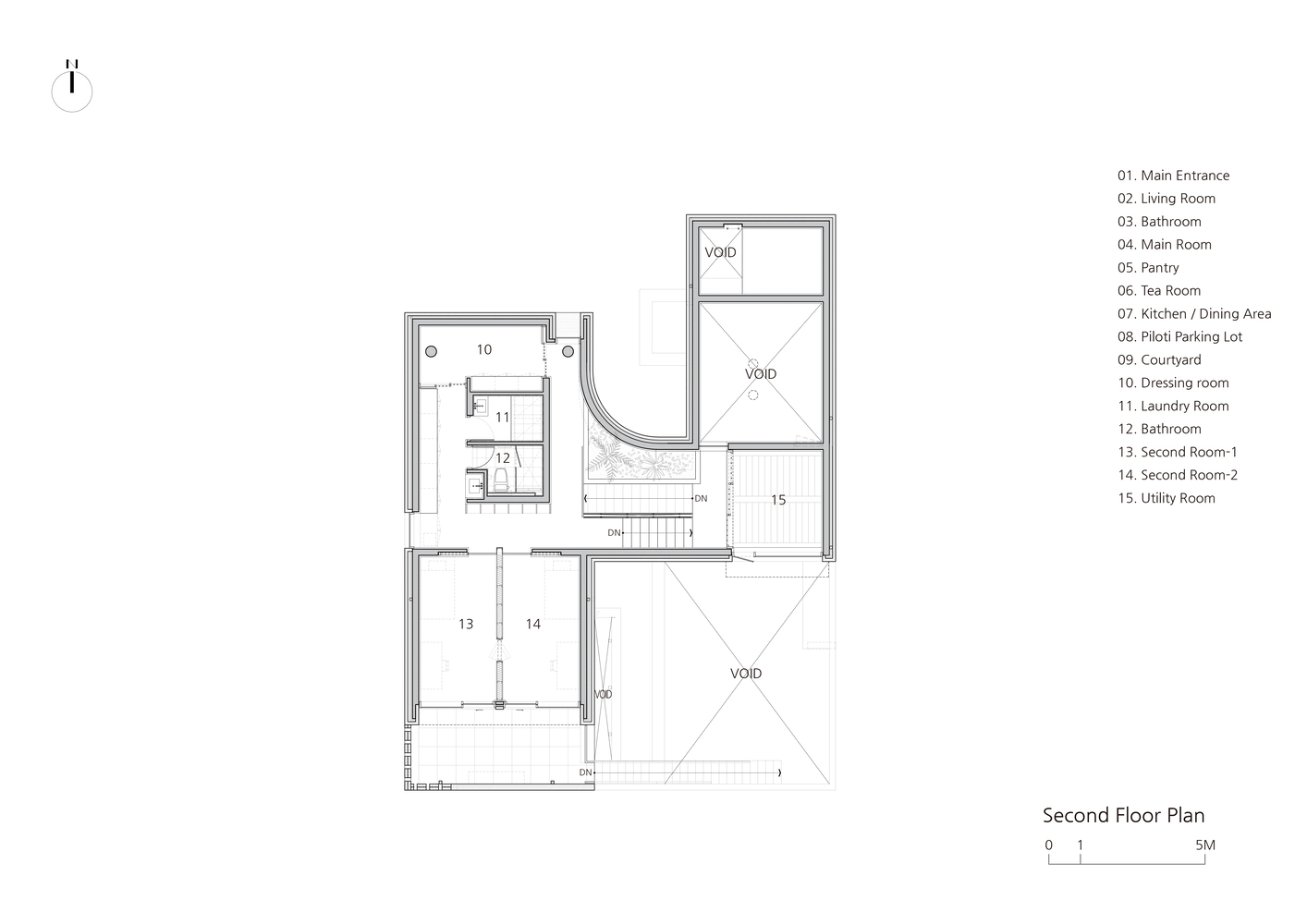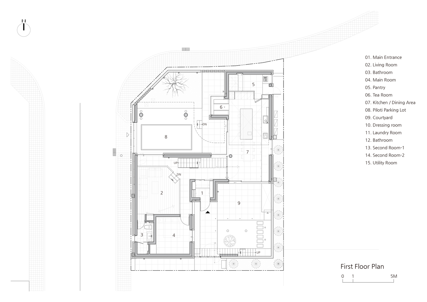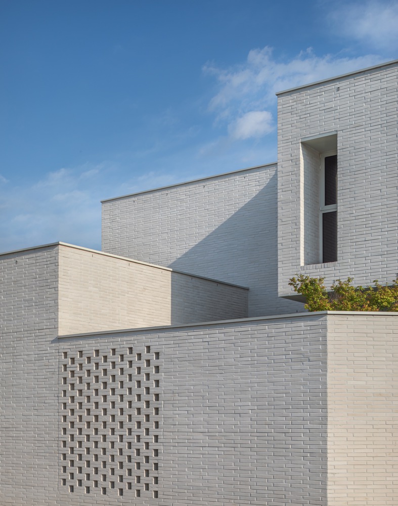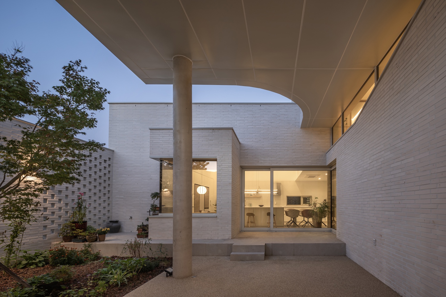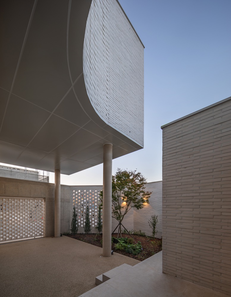 The courtyard entrance serves as an architectural buffer to soften the contrasting sensations between the city and architecture and deliver an intimate sense of the residential space.