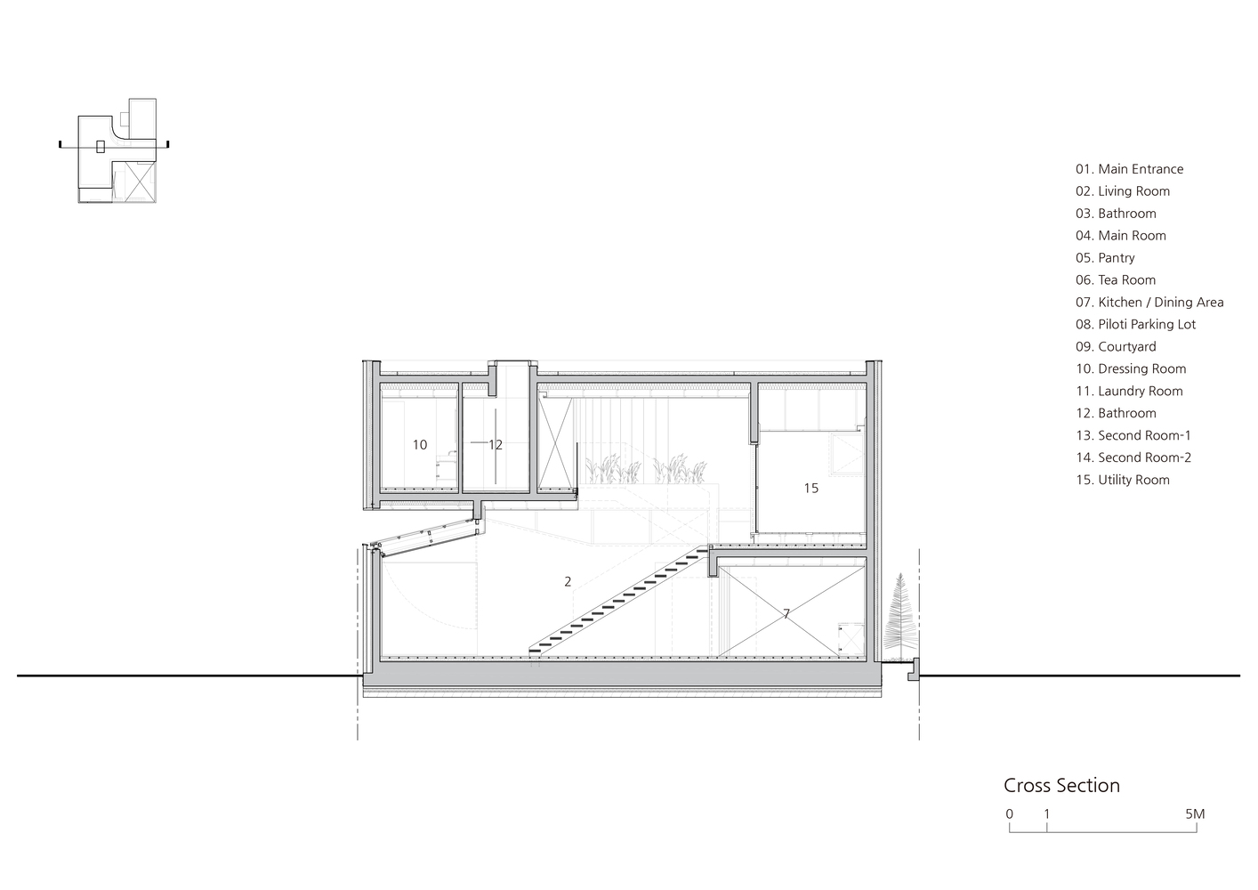 The House of Boundary is designed for a middle-aged couple and their two children. The house's structure reflects careful consideration of the boundaries between urban and private spaces or between architectural elements.