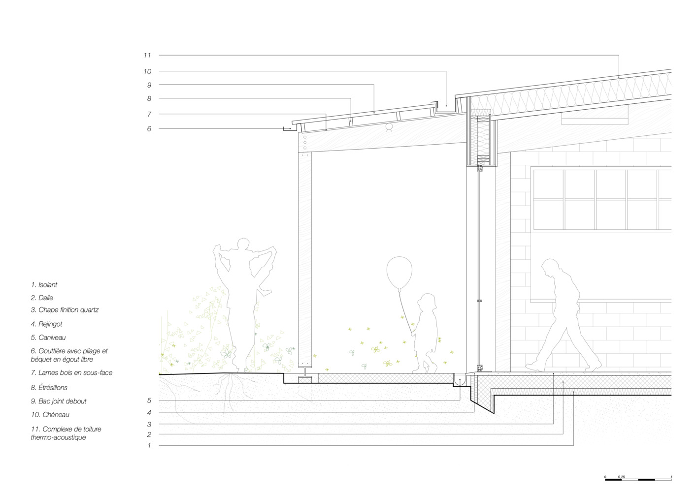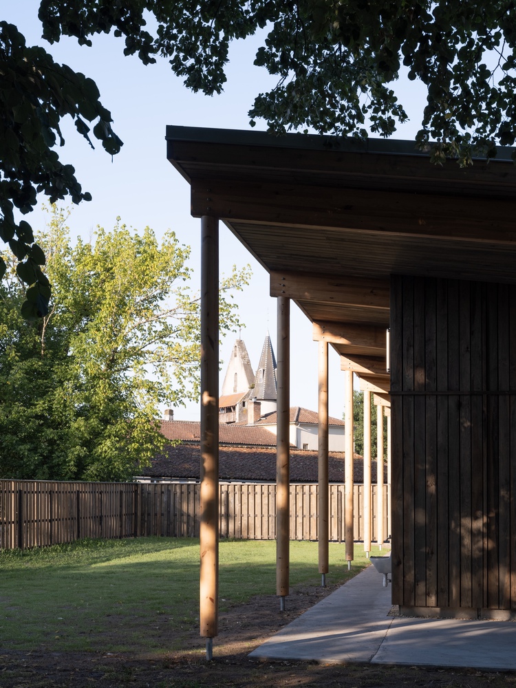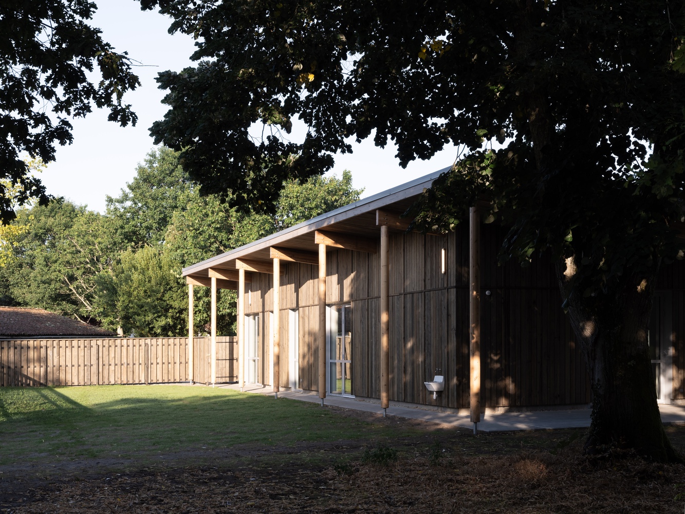 In Trensacq, a small village in the Landes de Gascogne region (France), two public facilities are situated at the edge of the forest: a multi-purpose hall and an elementary school.