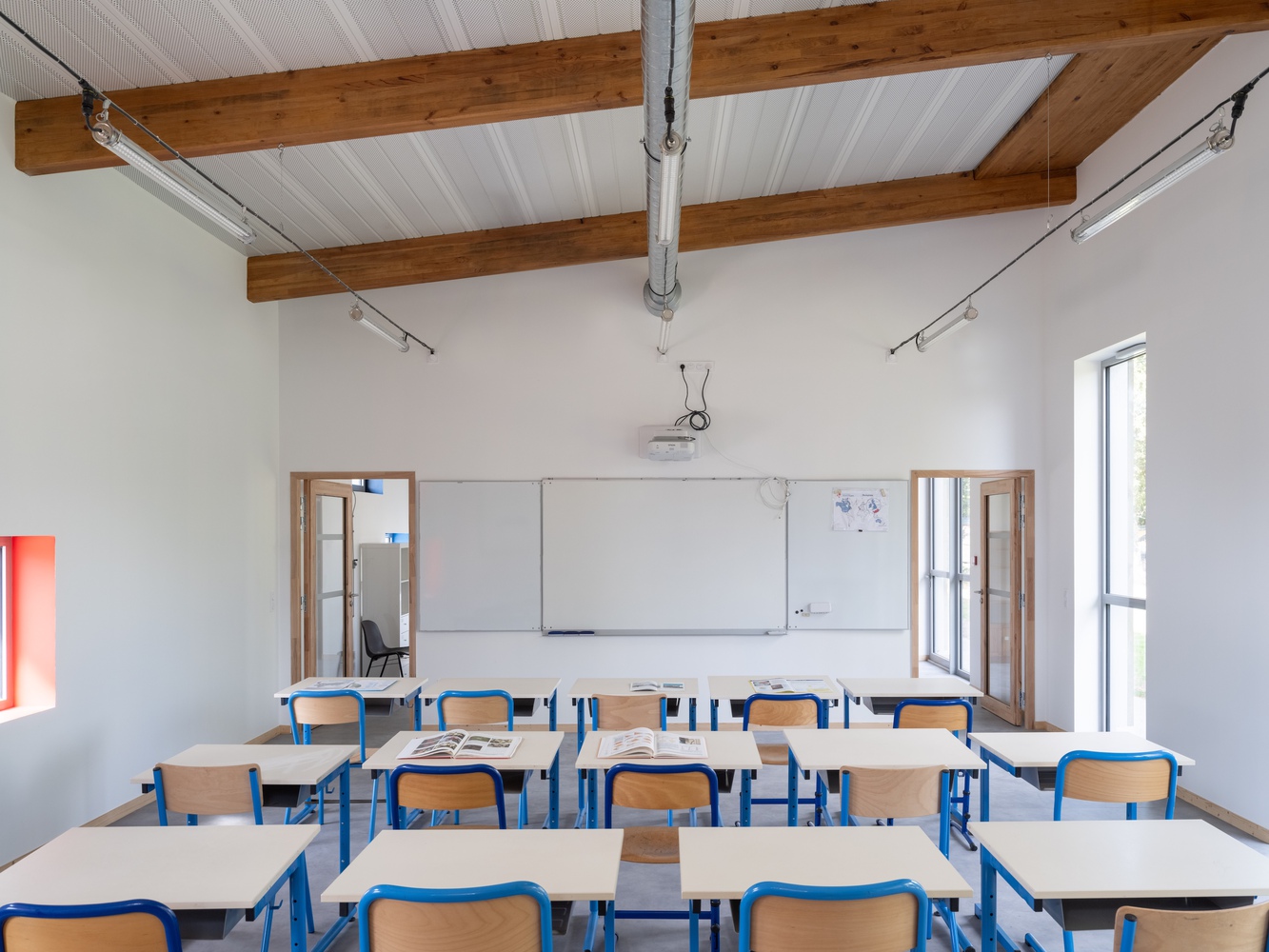 The design establishes a new focal point for the community: a structuring public hub near the town hall, combining two essential spaces of the collective life, a modular multi-purpose hall for associative and festive activities, and a single-classroom school, envisioned through the eyes of a child.