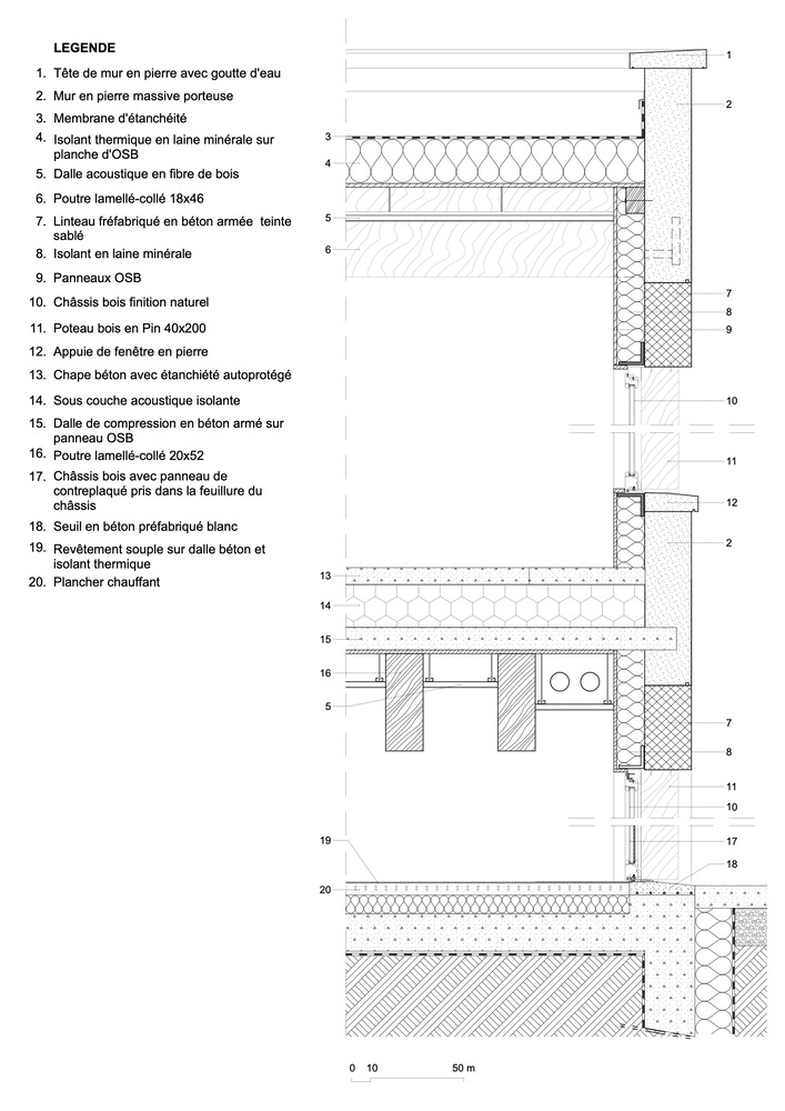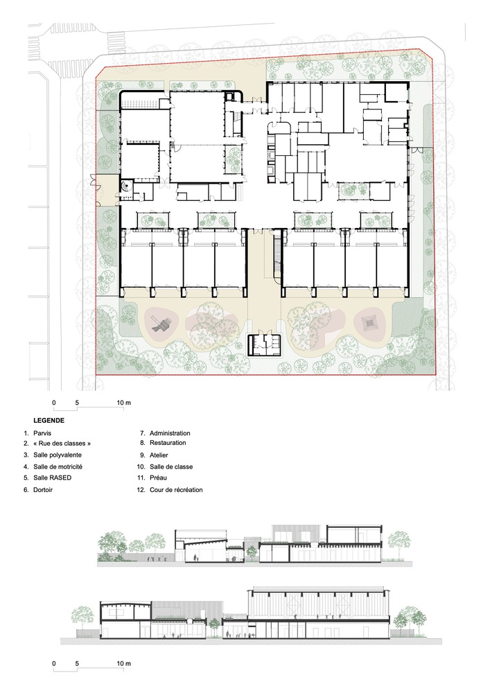 The school's load-bearing stone façades come from the Bonneuil-en-Valois quarry, located less than 60km from the construction site.