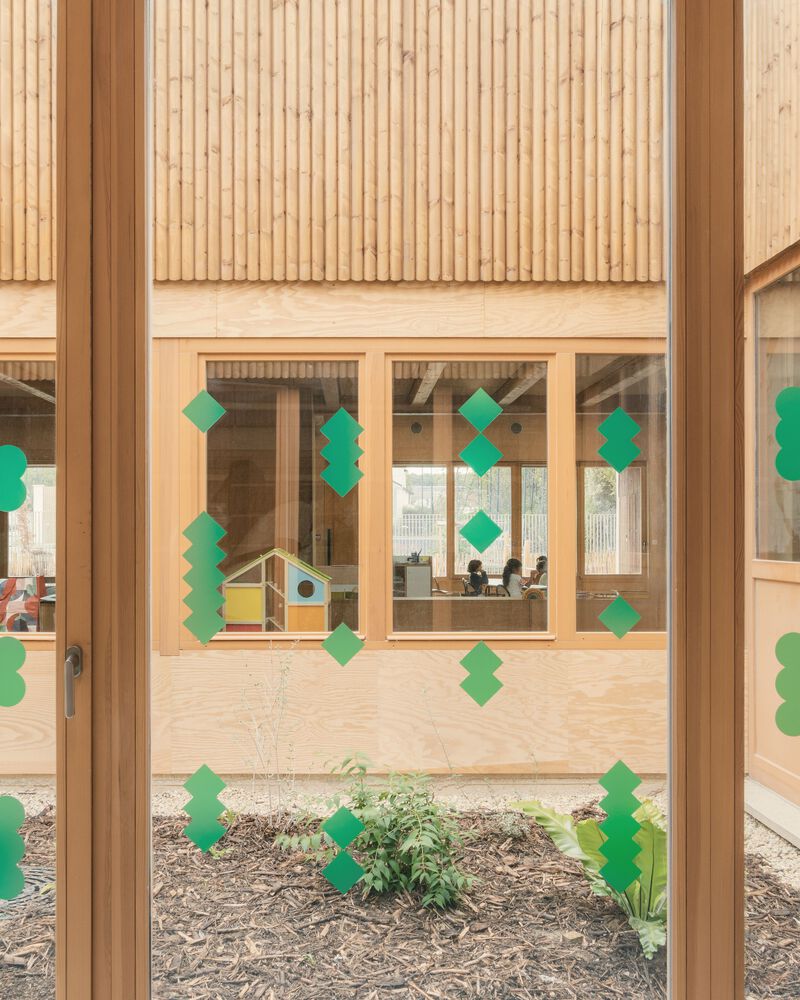 To the south, the largest volume of the classes directly overlooking the playground is more collective. Each classroom also benefits from a 'private' play area overlooking the 'common' playground.