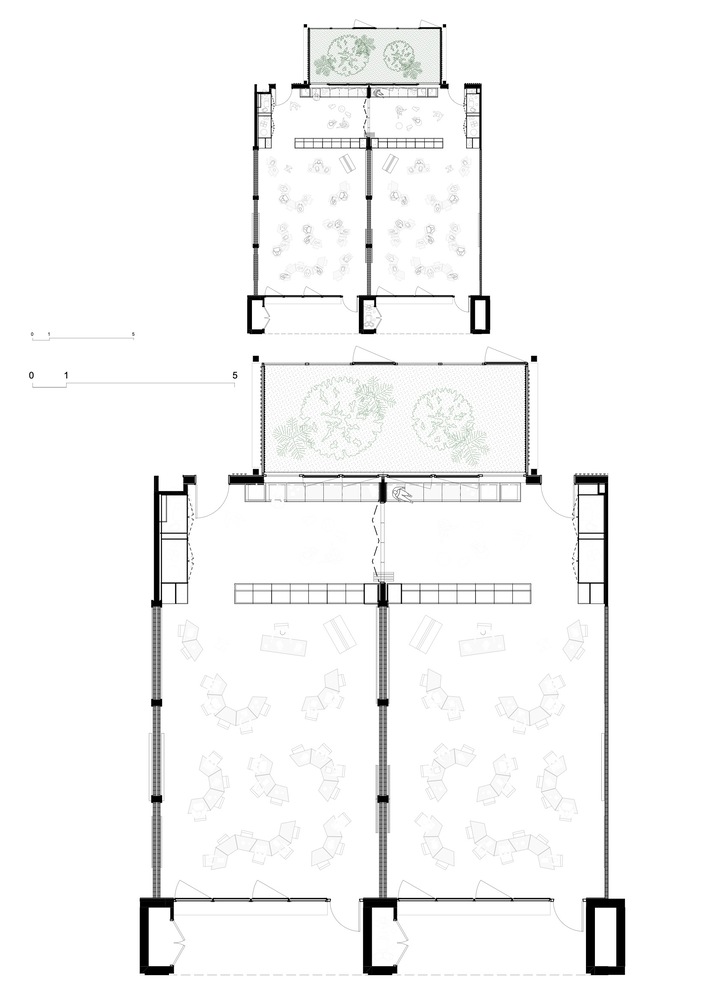 The patios embellish and punctuate the common areas to the extent that all the spaces of the project benefit from very good natural lighting ,fresh air, and comfortable humidity.