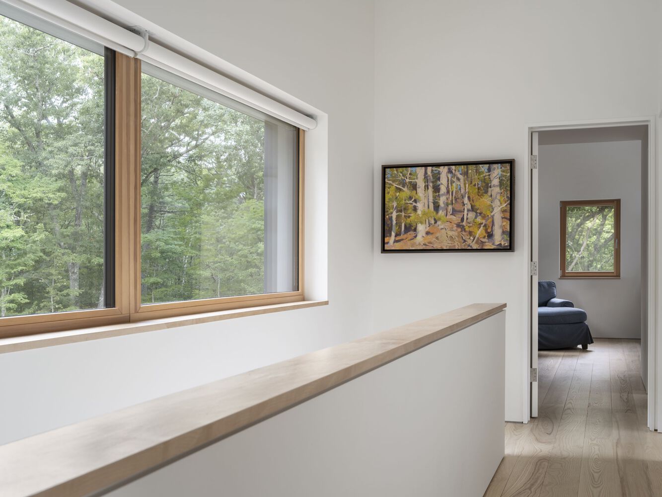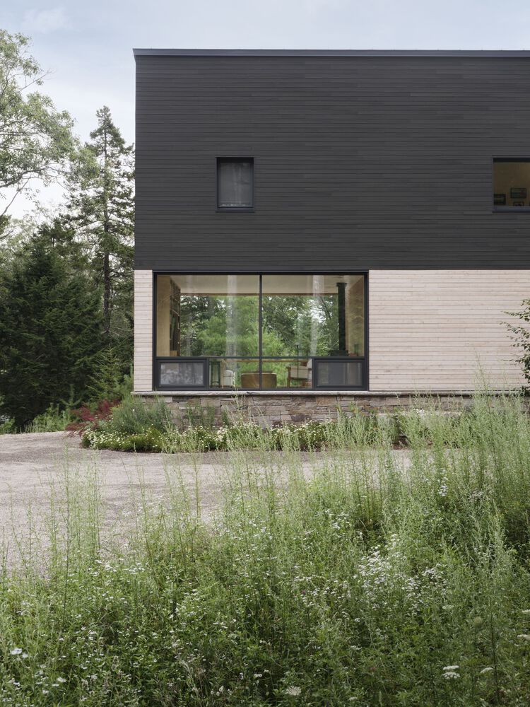 A lower band of clear unfinished eastern cedar provides a warm and welcoming tone at the ground floor.