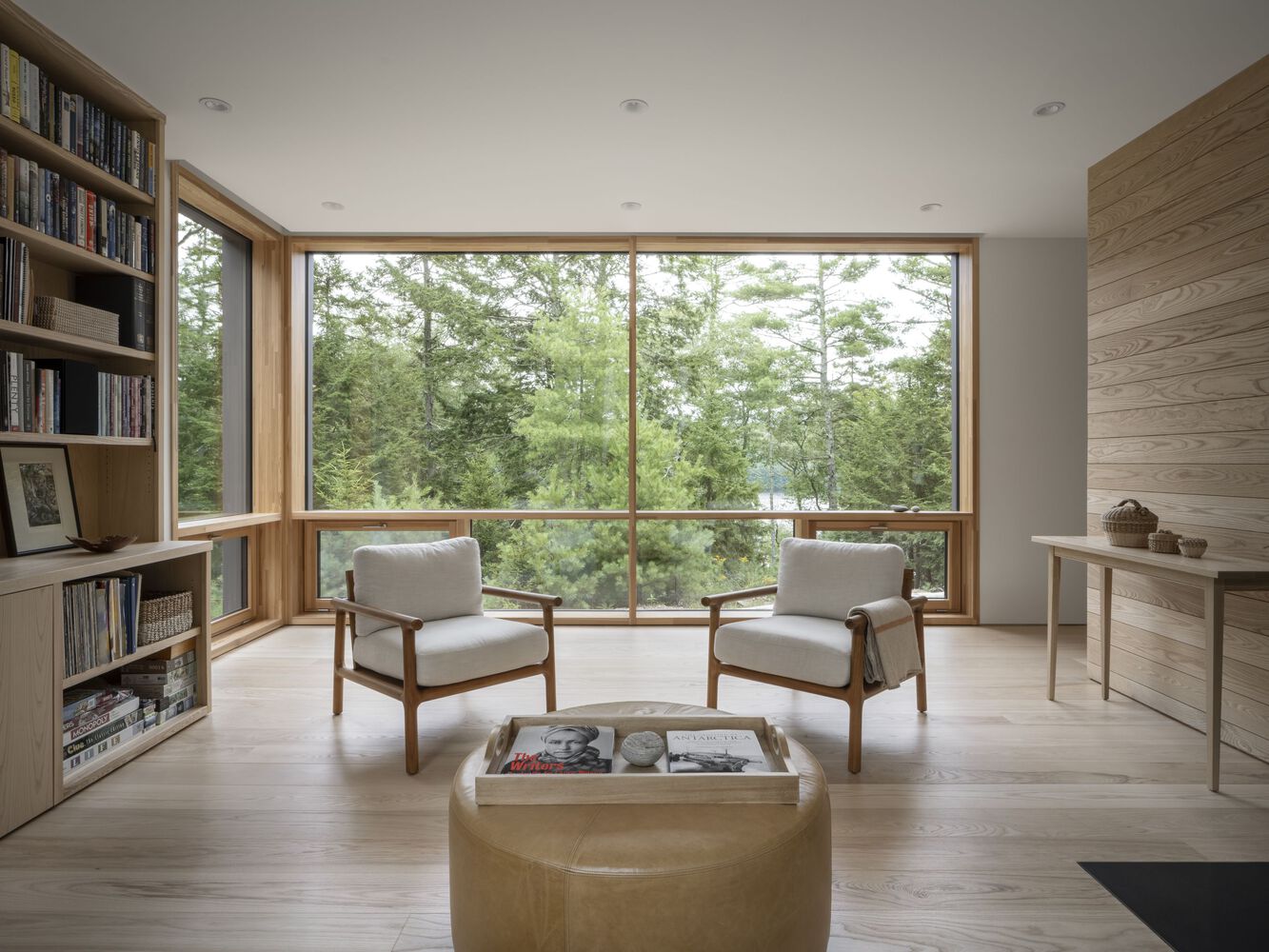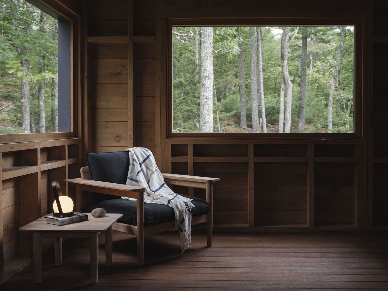 The porches, which add 500 square feet of space, are detailed with carefully crafted and exposed white oak framing as a nod to traditional seasonal Maine cottage architecture.