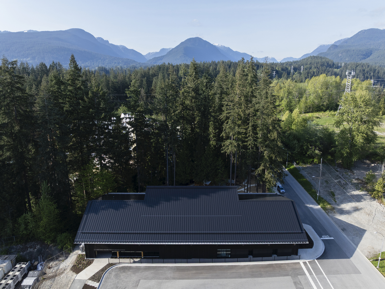 From the outside, the building reflects its local context. Its linear form and expressive mass timber structure are regionally distinctive.