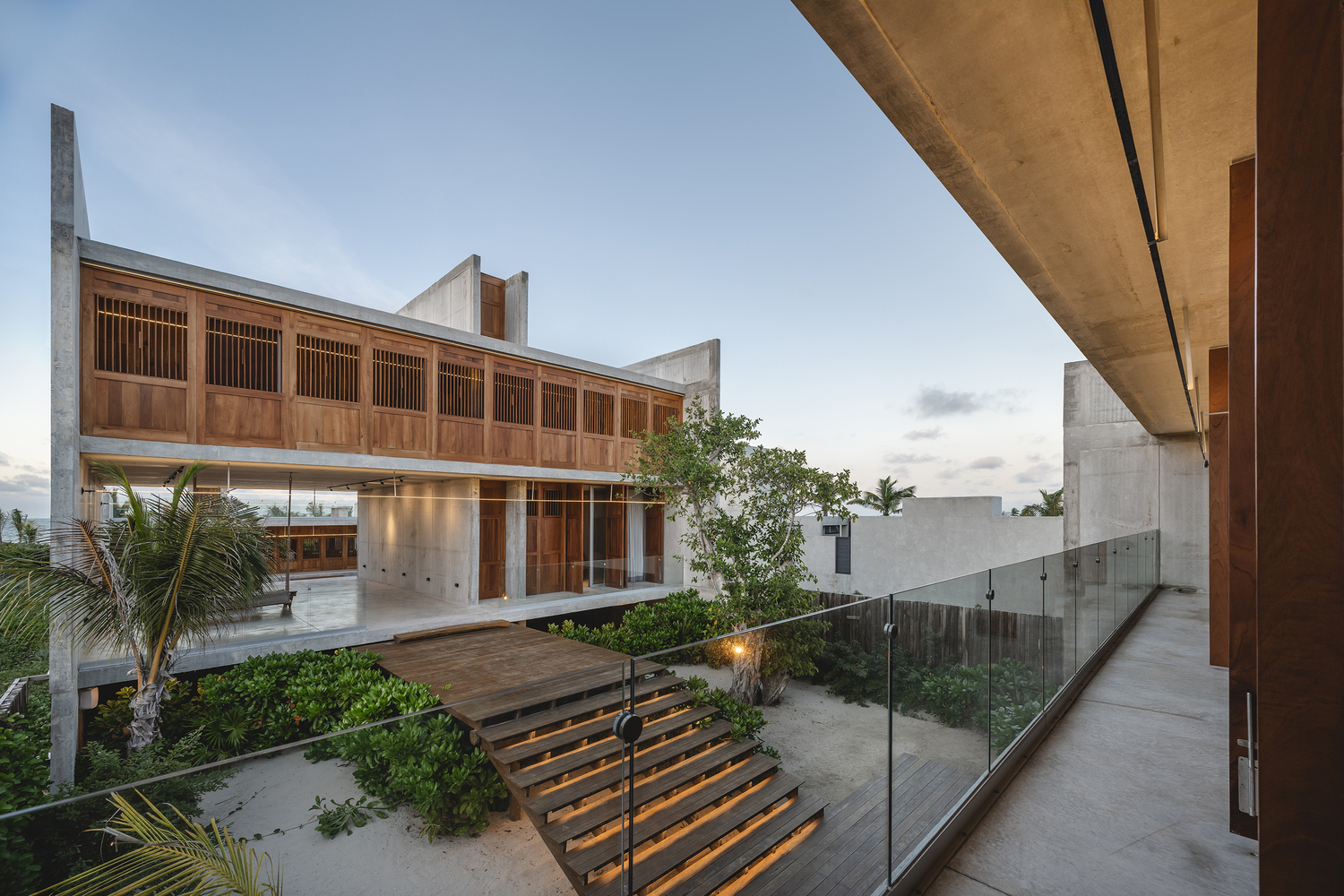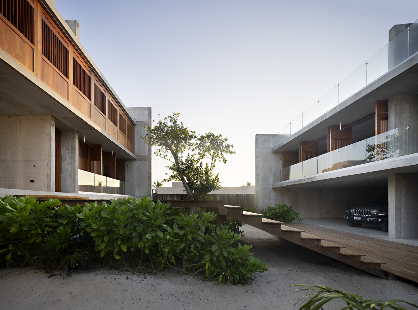 The orientation captures the sea breeze, while the interior courtyards function as bioclimatic regulators, providing shaded and cool spaces.